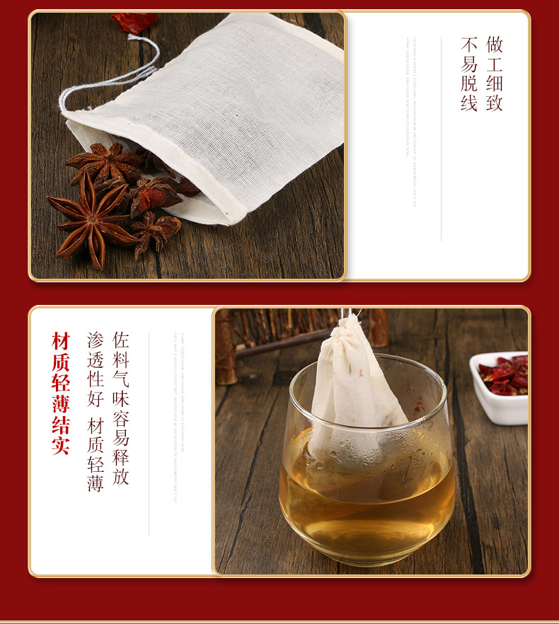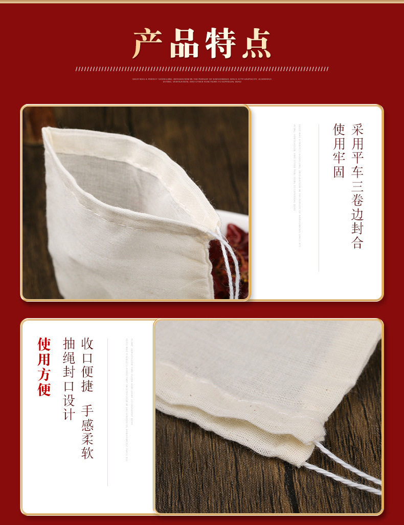 工場卸売高密度フィルターバッグティーバッグ漢方薬バッグフィルター残留物バッグ純綿バッグアイスパウダーガーゼバッグコットンバッグ