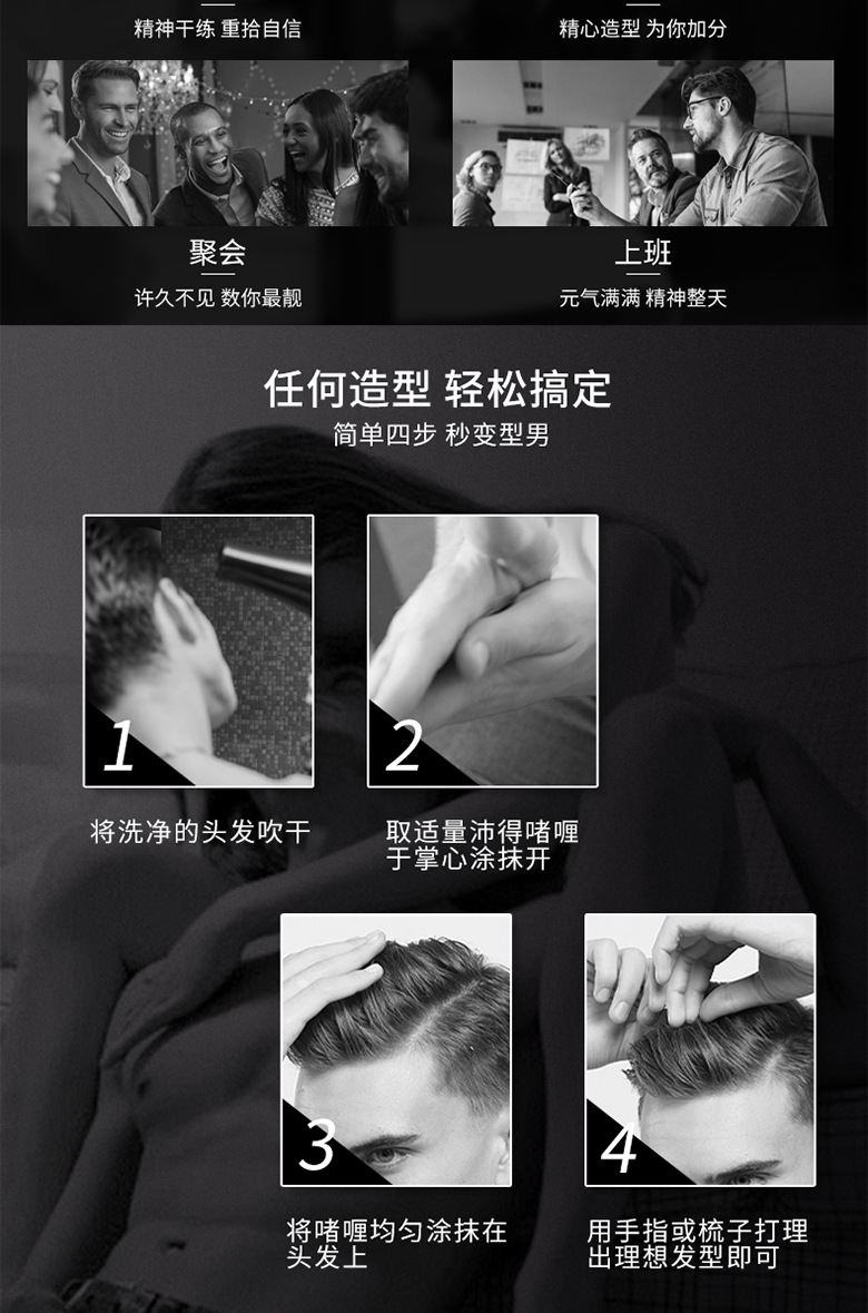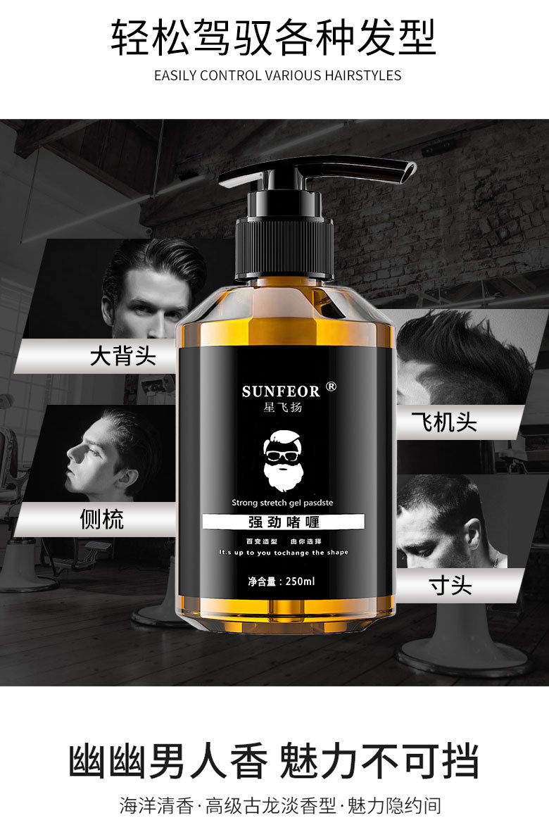 星が舞い上がる強力なジェルクリーム男性の背中の髪がふわふわしたレトロなオイルヘッドのハードセット水250mL