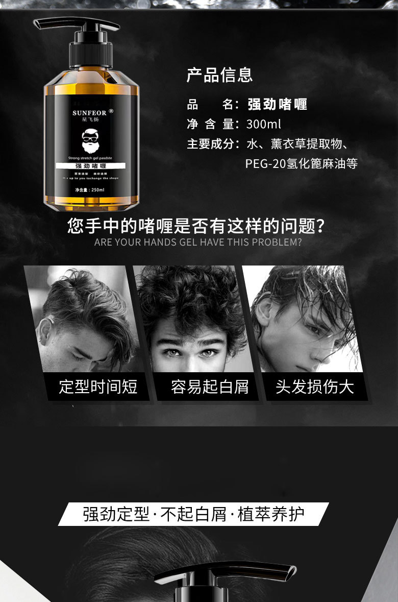 ジェルクリーム油頭強力セット特硬ジェル水ヘアサロン美容店ヘアゴムヘアワックス卸売り250ml