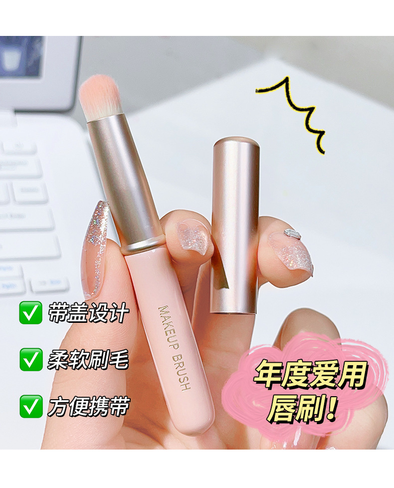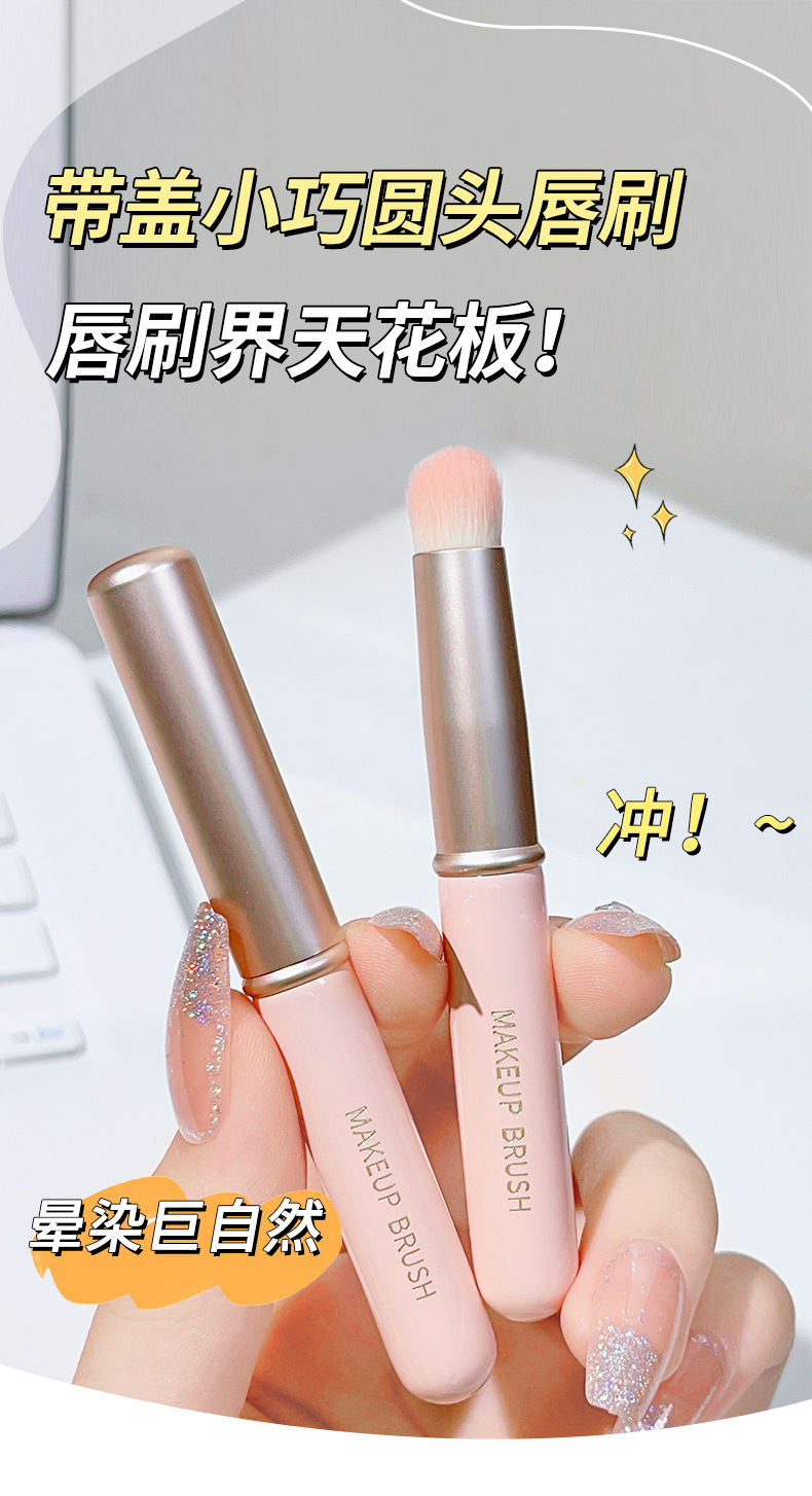 Qソフトシリコン唇ブラシ丸頭指腹口紅ぼかしブラシカバー多機能化粧ブラシ携帯型防塵カバー付き