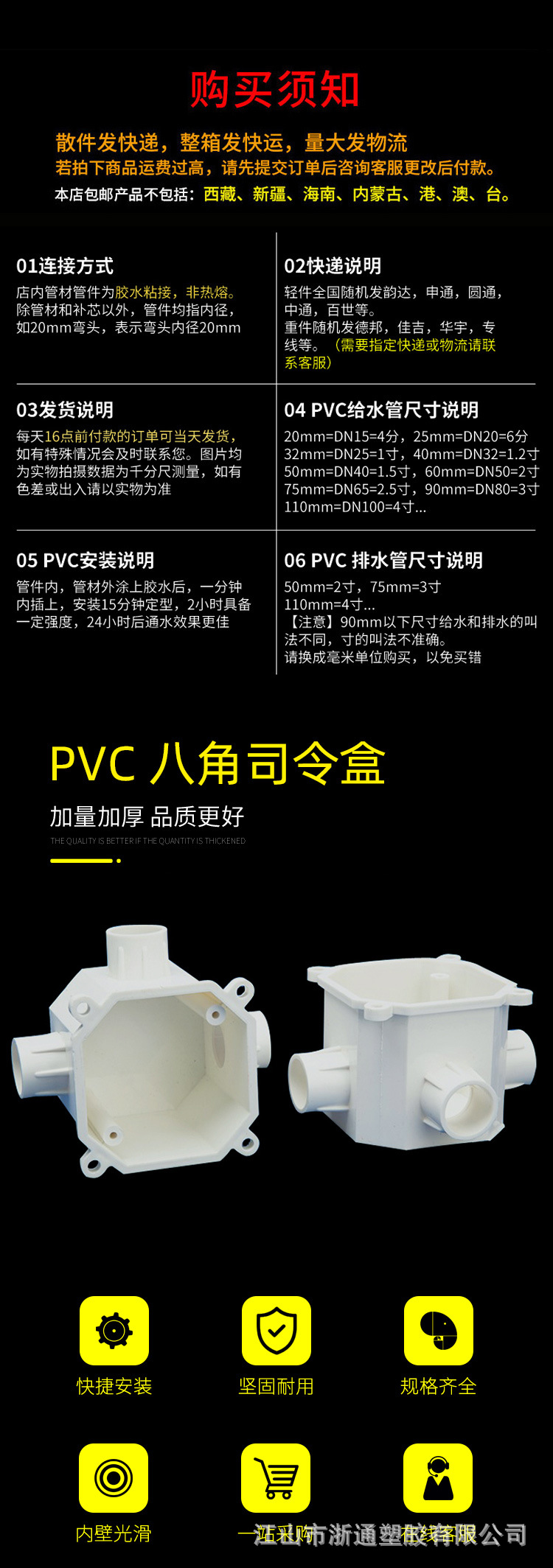 PVC预埋司令箱 灯头盒分线盒高深八角暗装圆接线盒塑料一二三四通