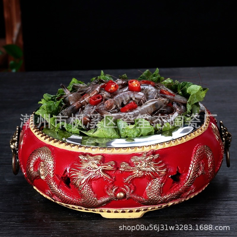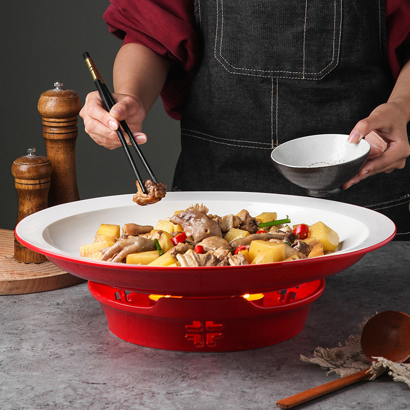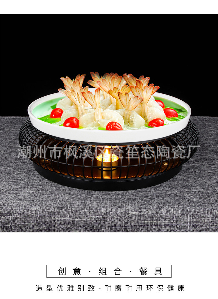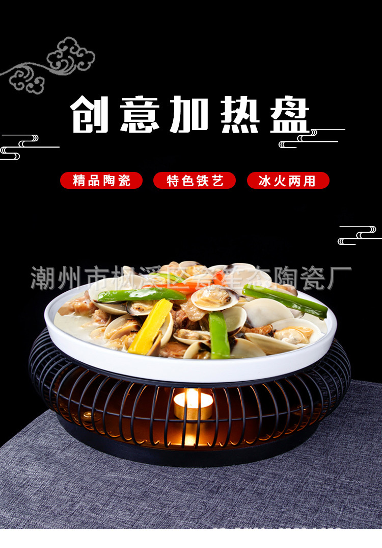 保温盘热菜盘农家乐土家菜陶瓷吉祥炉明炉蜡烛加热餐具海鲜盘炒菜