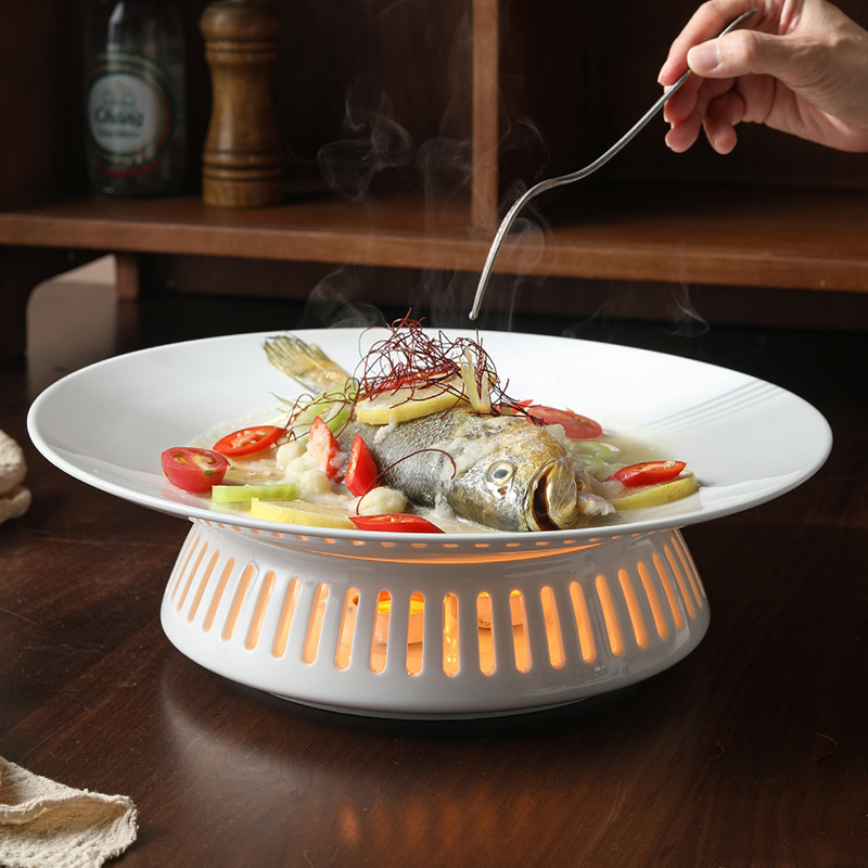 ホテルオープンストーブ食器大型ディッシュプレート家庭用クリエイティブセラミック断熱加熱ドライポット特殊プレート商業ディスク