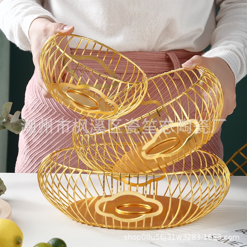 ヨーロッパ風の創意的な果物かごのハイエンドの軽豪華な鉄芸の間食はたらいの客間のお茶のいくつかのキャンディーを収納して皿を並べて棚を展示します。