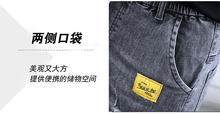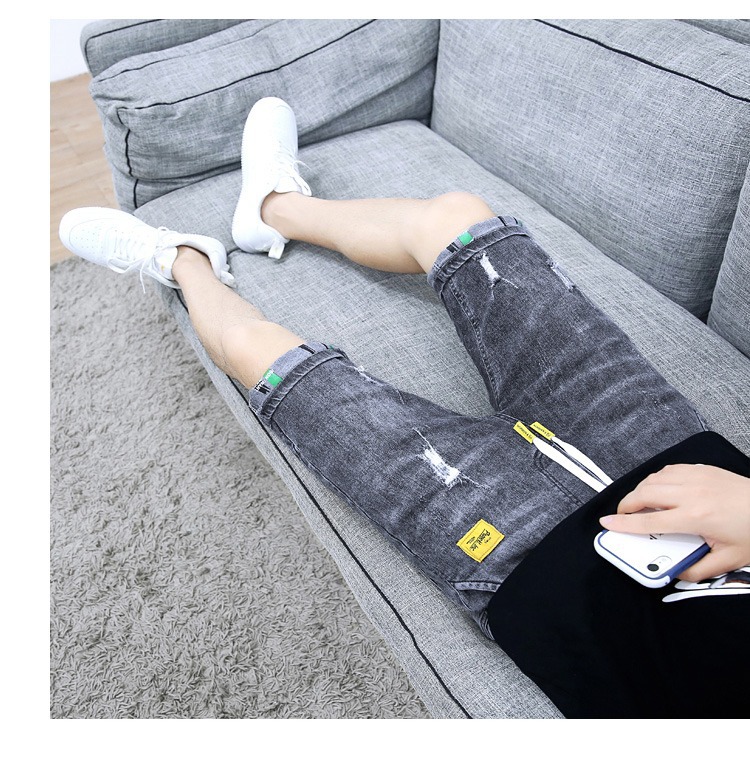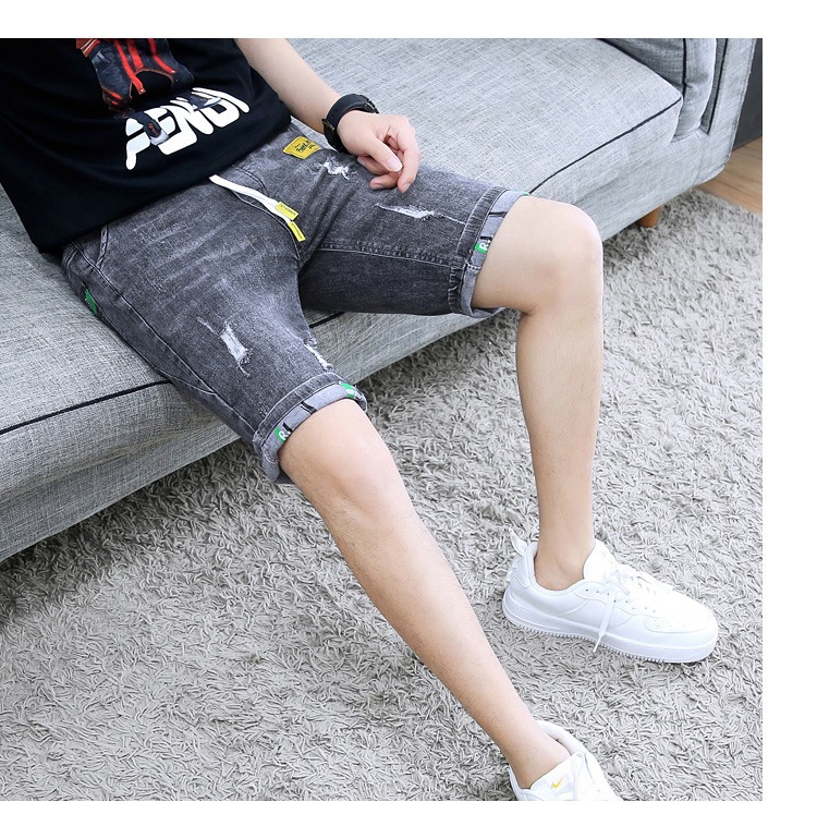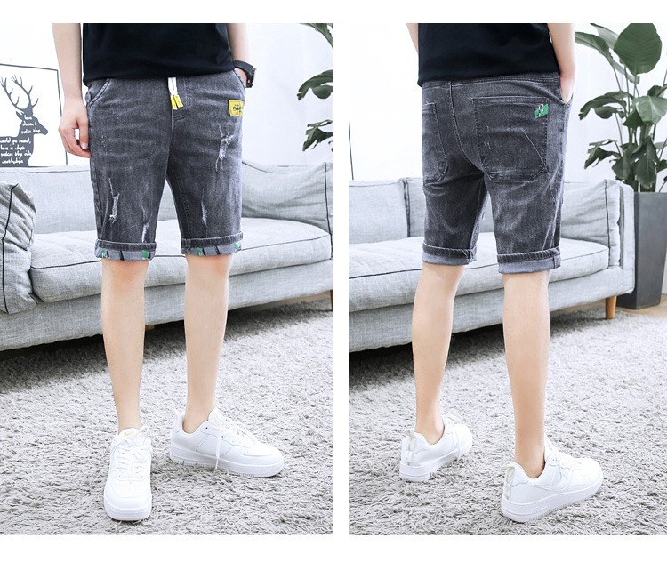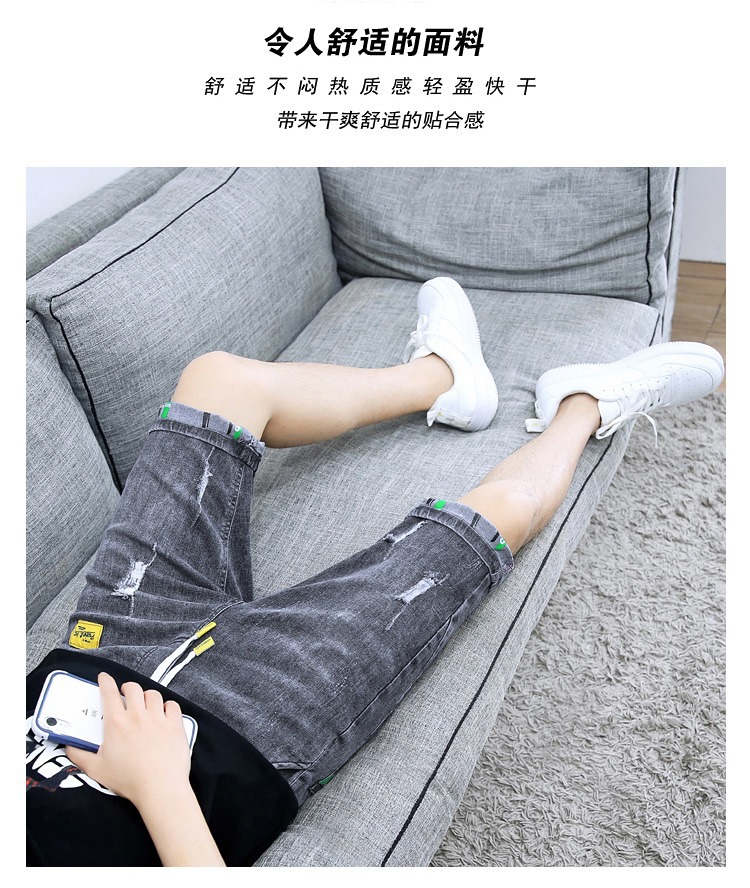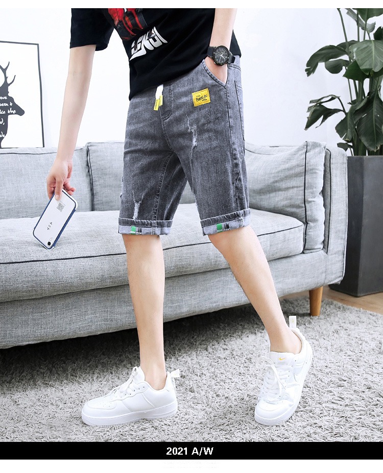 夏の薄いデニムの半ズボンの男性のカジュアルな穴の5分のズボンの2023の新型のファッションのブランドの百合の5分の中のズボン