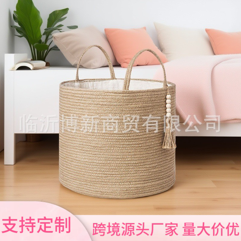 クロスボーダー手織りジュート収納バスケットわら汚れた衣類バスケットホーム北欧スタイルポータブル衣類おもちゃ収納バケツ