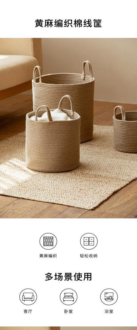 轻奢北欧简约风家用棉绳收纳筐换洗衣物脏衣篓玩具置物篮筐收纳筐