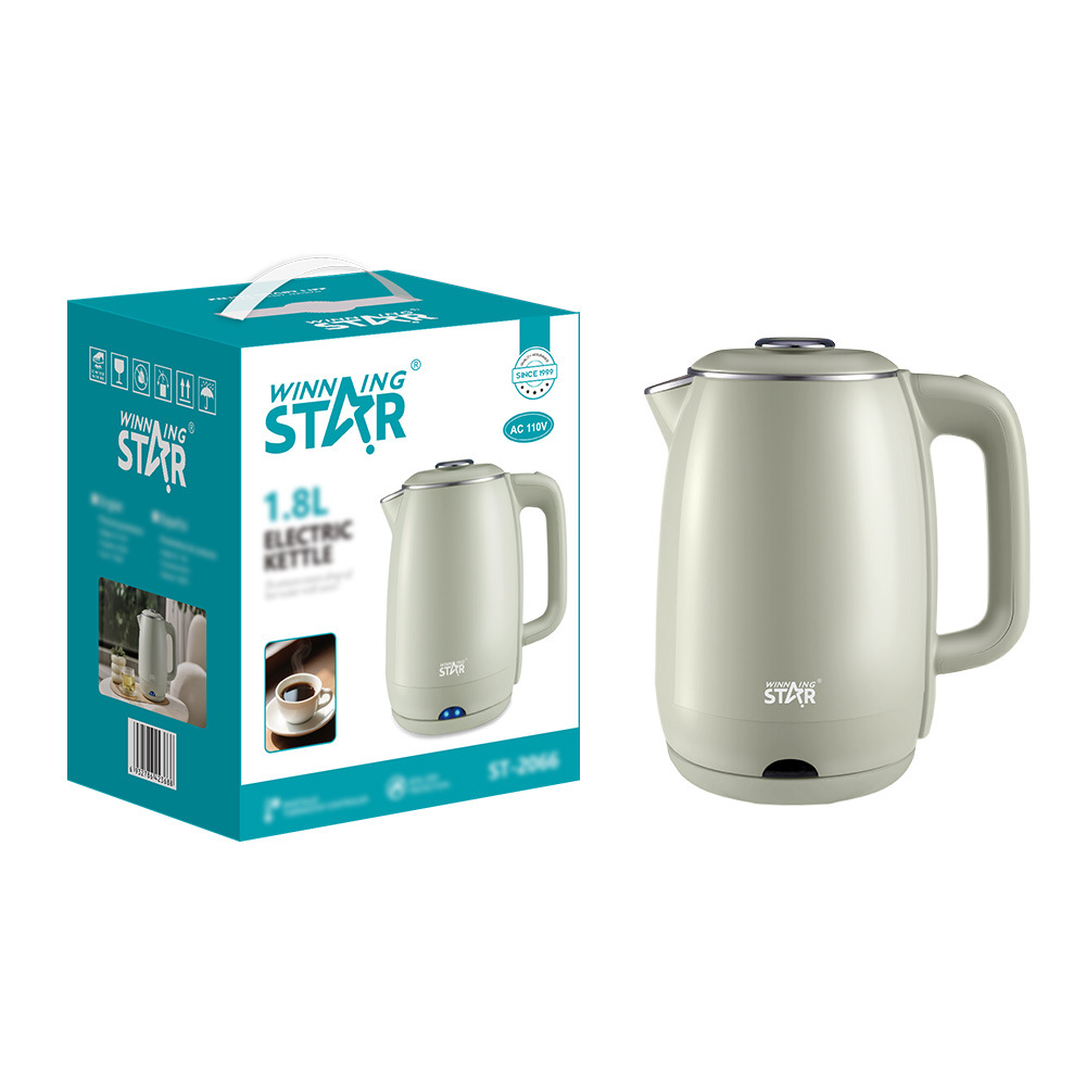 电热水壶,ST-2061,电压:AC110V,60Hz,功率:1000W,容量:1.7L,材质:不锈钢,防干烧,尺寸:235*148*223mm