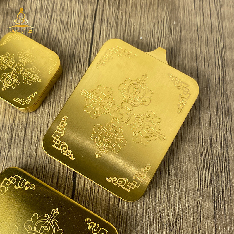 2025チタン鋼ガウ箱ミニ角型唐カード小ペンダント五路財神唐カードペンダントお守り電気金メッキ