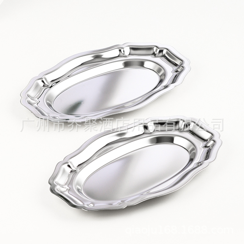 304不锈钢果盘跨境甜品盘花边椭圆形毛巾盘托盘餐厅酒店