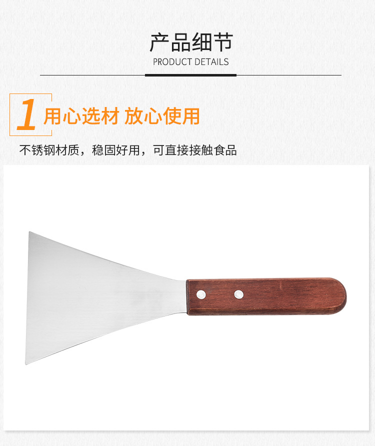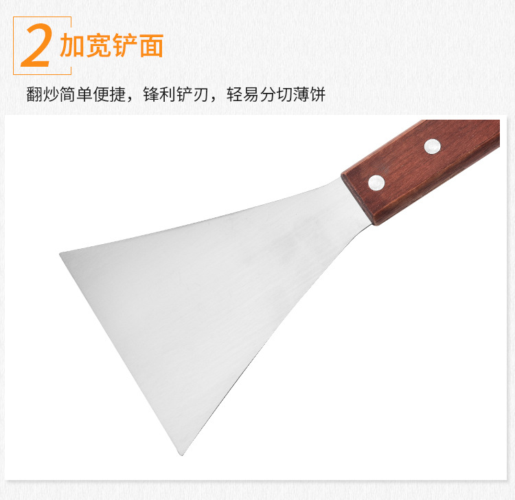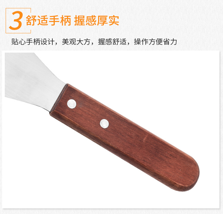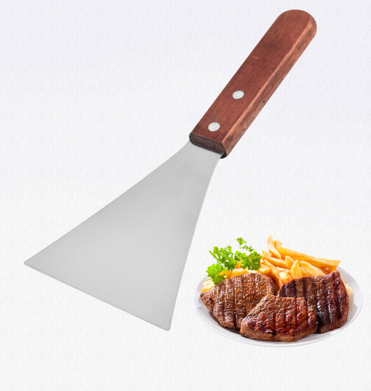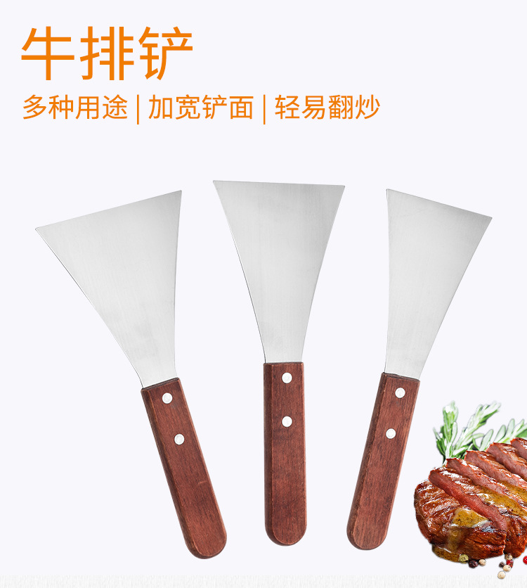 木柄不锈钢料理铁板烧三角牛排铲 烹饪工具手抓饼平口八字料理铲