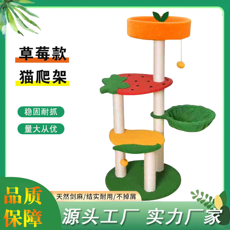ストロベリーサイザル麻キャットクライミングフレーム、キャットトイ、キャットジャンプ台、キャットネスト、キャットスクラッチャー、オールインワンキャットクライミングフレーム、キャットトイ、ストロベリースタイル