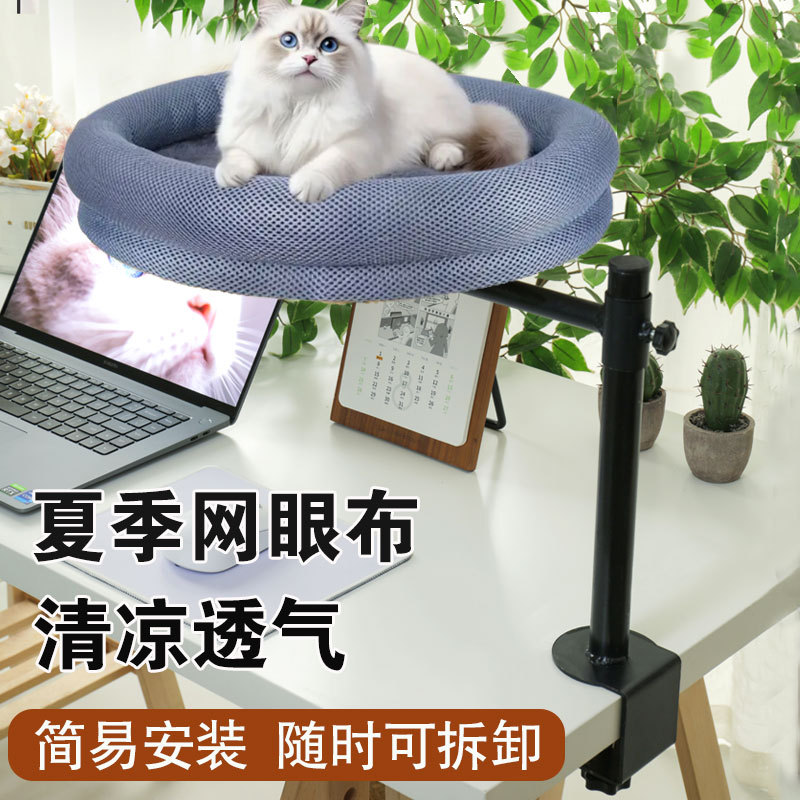夏用メッシュ格子吊り下げ猫テーブルベッド 360 度回転と高さ調節可能なテーブル猫ベッドは柔らかく快適です