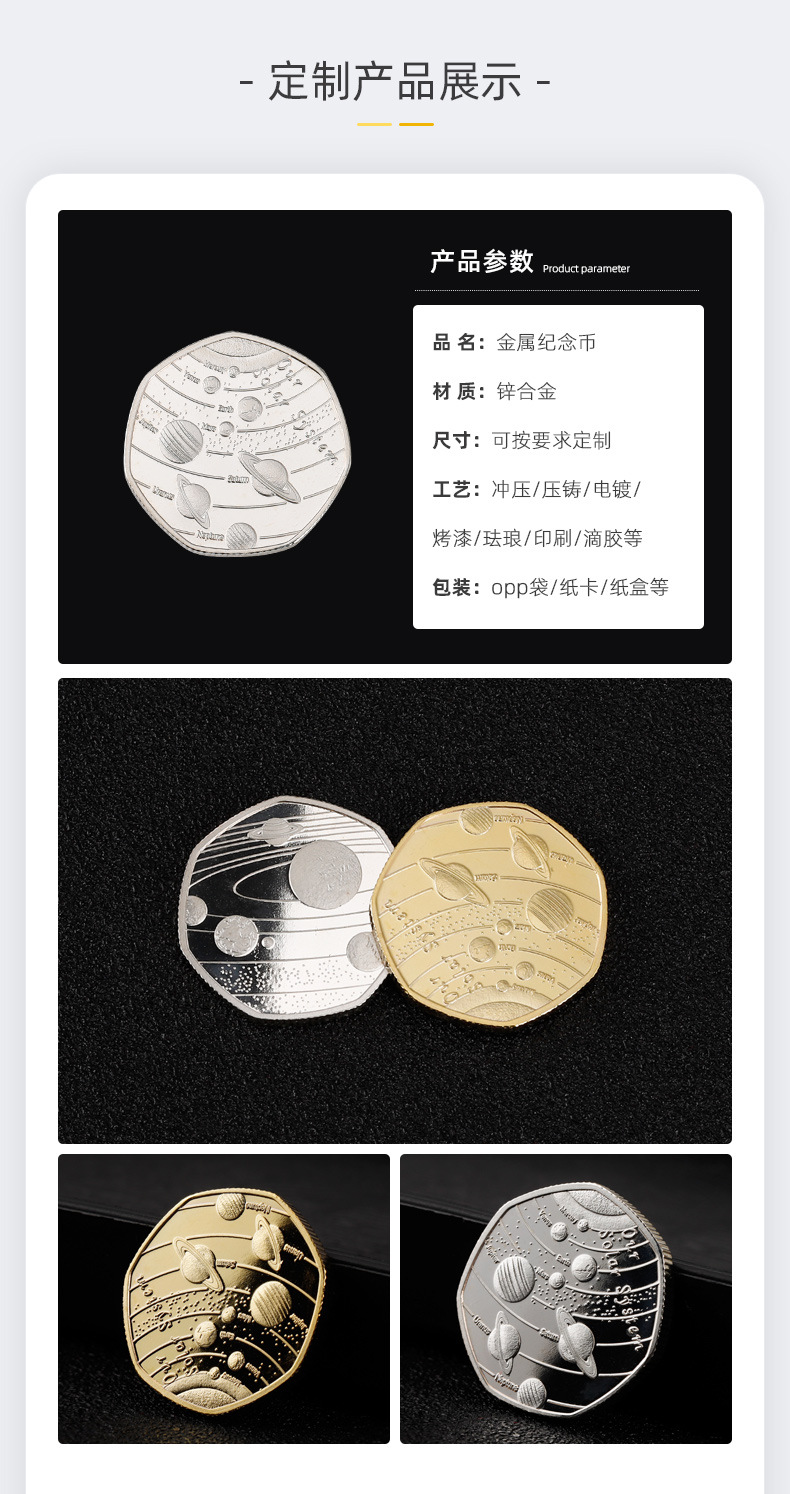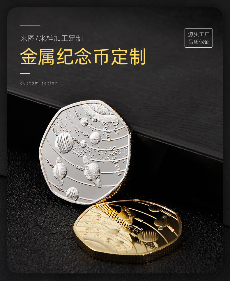 金属記念コイン カスタム 金銀二色硬貨 宇宙惑星記念章 亜鉛合金銀メッキ硬貨 記念版
