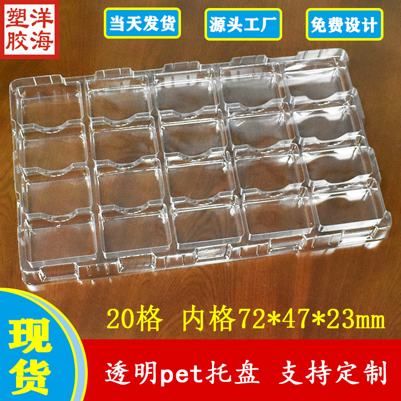 卸売り透明pet 20格内径72*47*23ブリスター箱金物回路基板pvc使い捨て包装トレイ