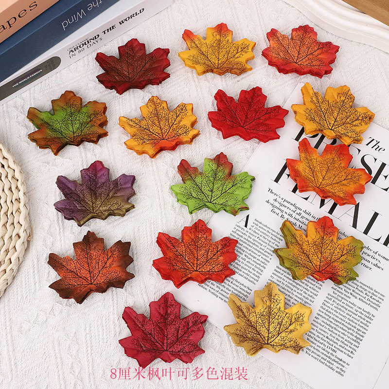 Amazonの人気商品 8CM 模擬カエデの葉 50枚 100枚 スタックされた葉は複数の色で混合して撮影小道具として使用できます