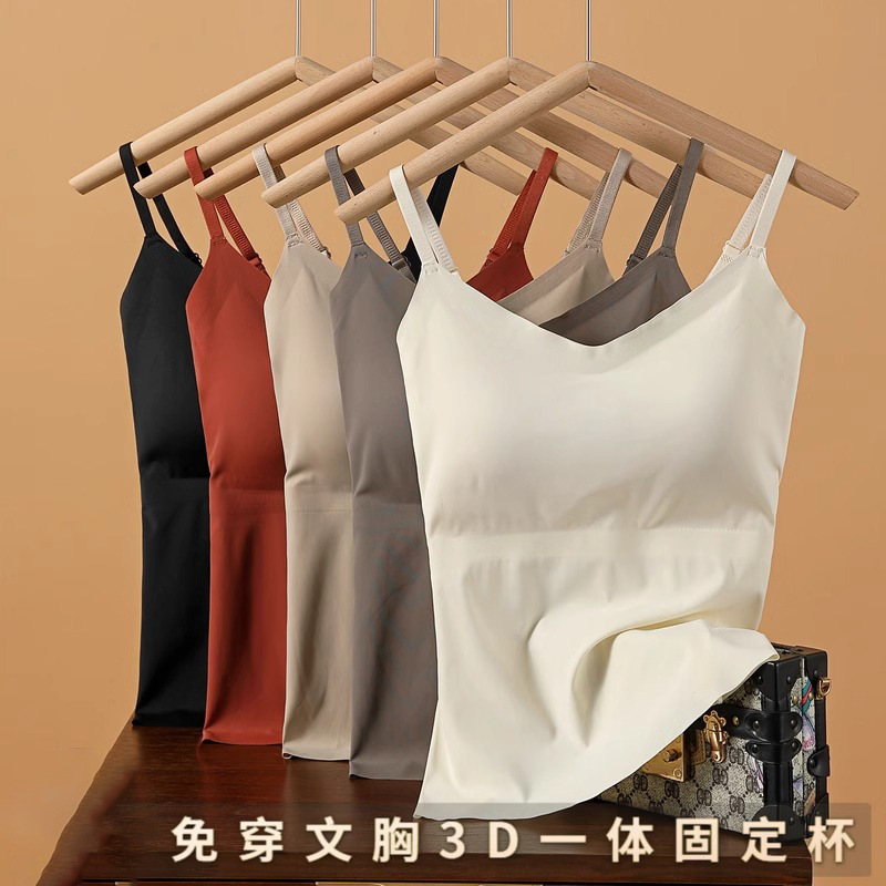 韓国版の夏の小さいサスペンダーの胸のパッドの短いタイプの美背は胸の学生の少女を巻いて底の純色の上着の純綿を打ちます。
