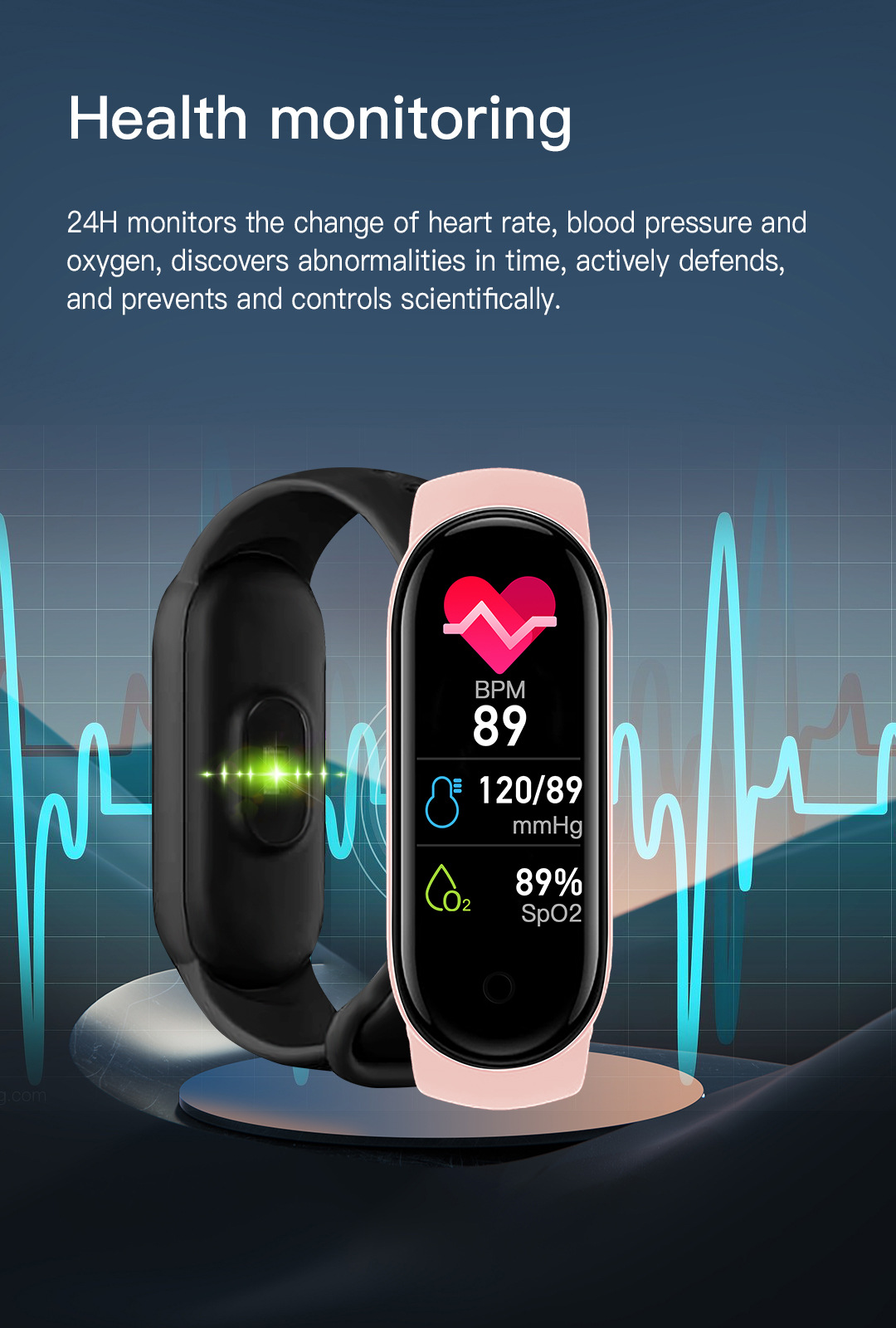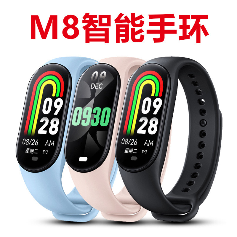 批发M8智能手环血氧心率手表血压检测健康运动手环男女款睡眠手表
