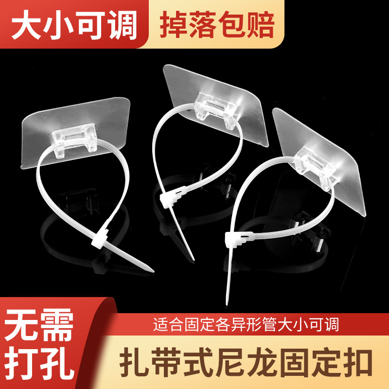 免打孔扎带固定扣理线管墙上无痕贴片可调节粘贴式管夹固定器挂钩