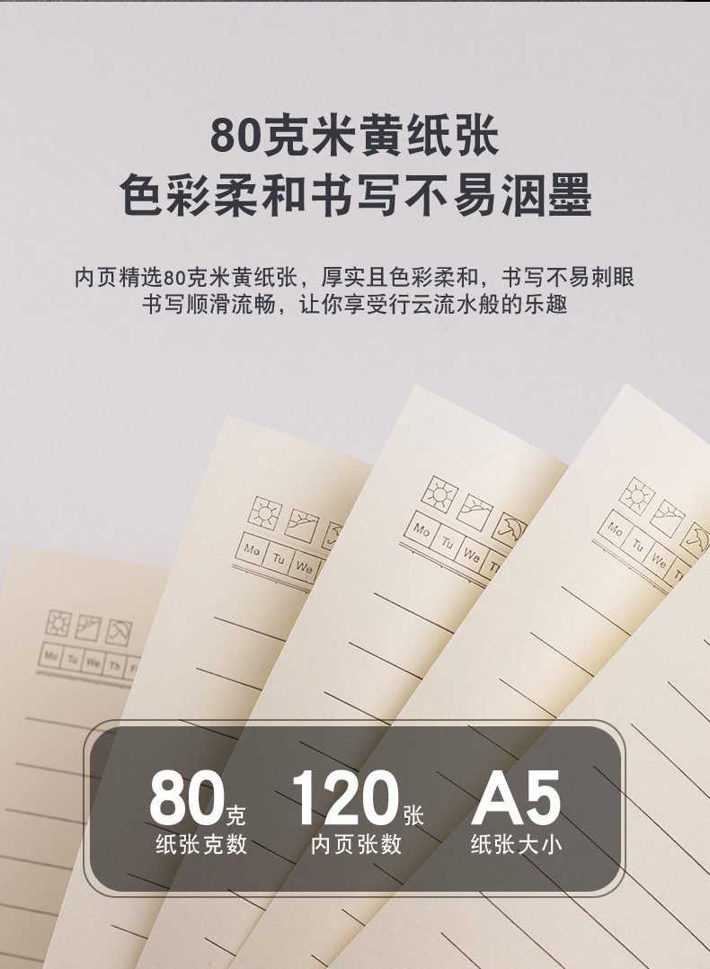 萌趣国潮风胶套本b5软皮笔记本子A5学生日记本加厚横线内页记事本