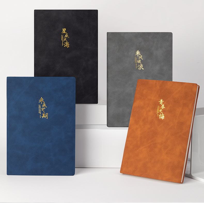 箔押しノートの皮面ノートの肌感の記録本a5ビジネス事務メモ帳の高さはロゴを印刷できる