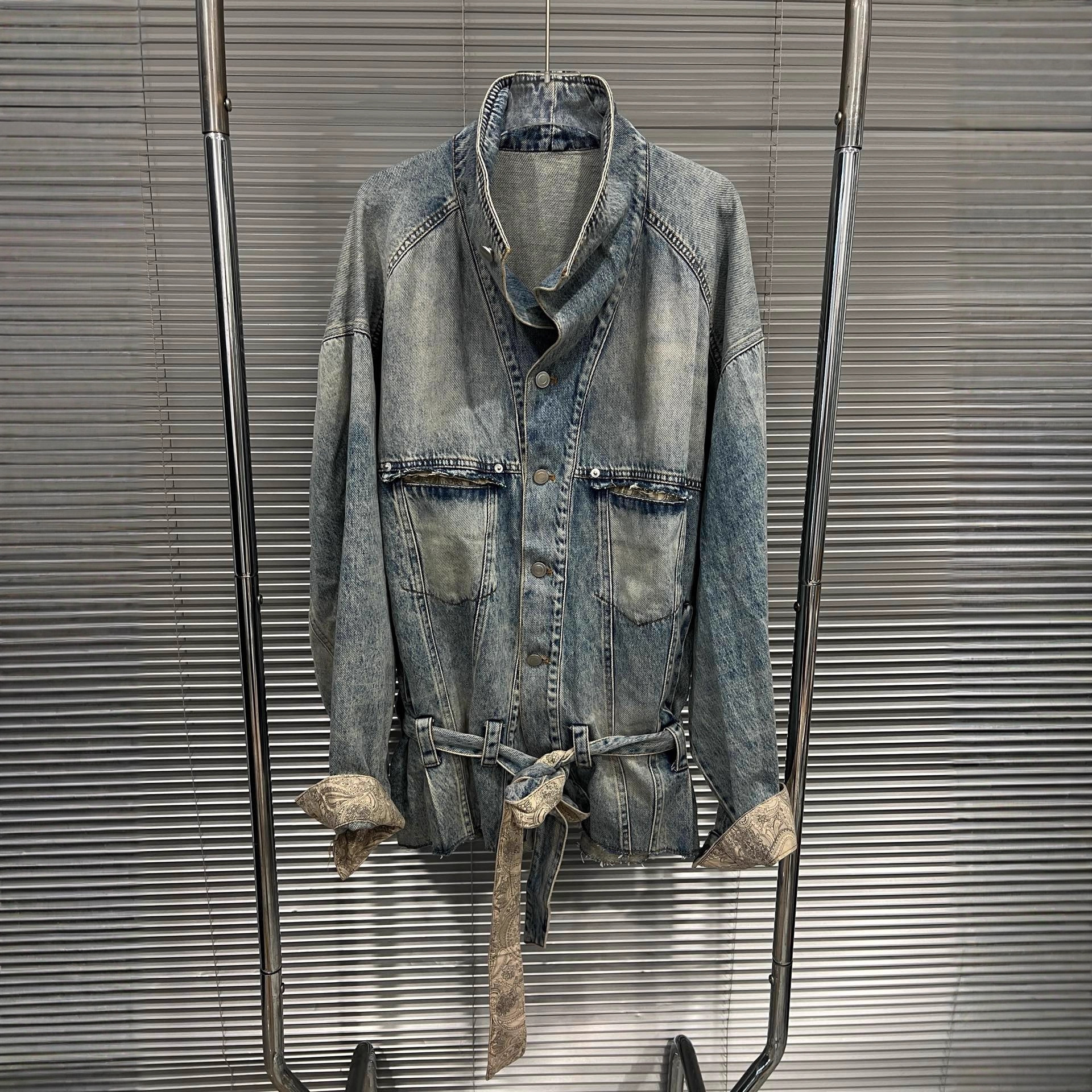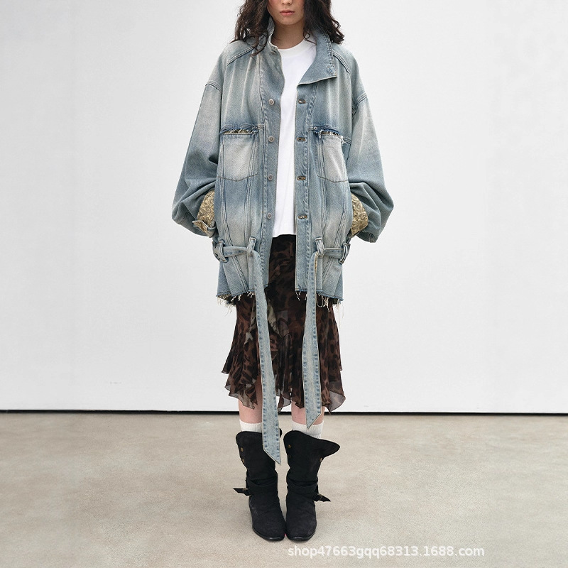 2025年早秋新款复古水洗宽松绑带牛仔外套时尚百搭女