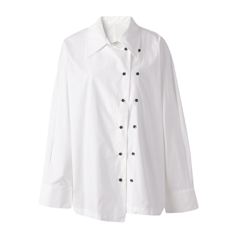 新しいニッチデザインの斜め前立てダブルブレスト2025春多用途ラペルカジュアルルーズシャツトップ