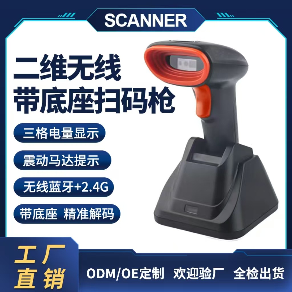 一维二维码无线扫描枪带底座可充电扫码枪蓝牙商超收银快递条码枪