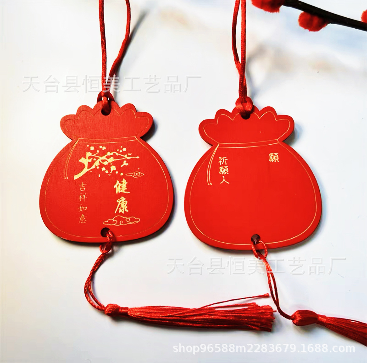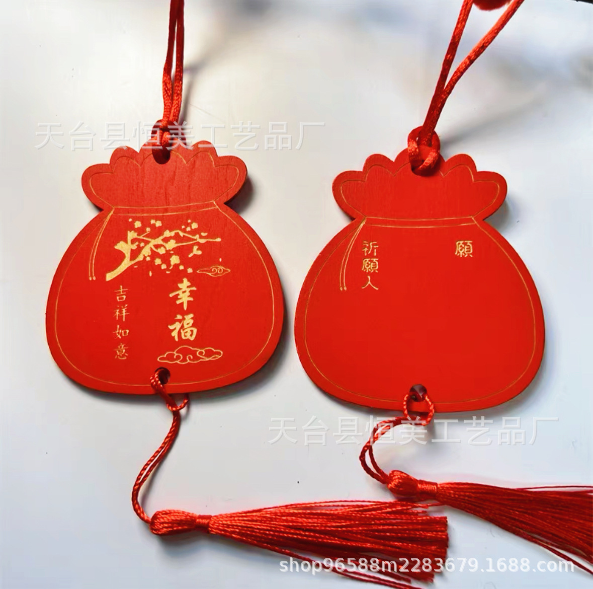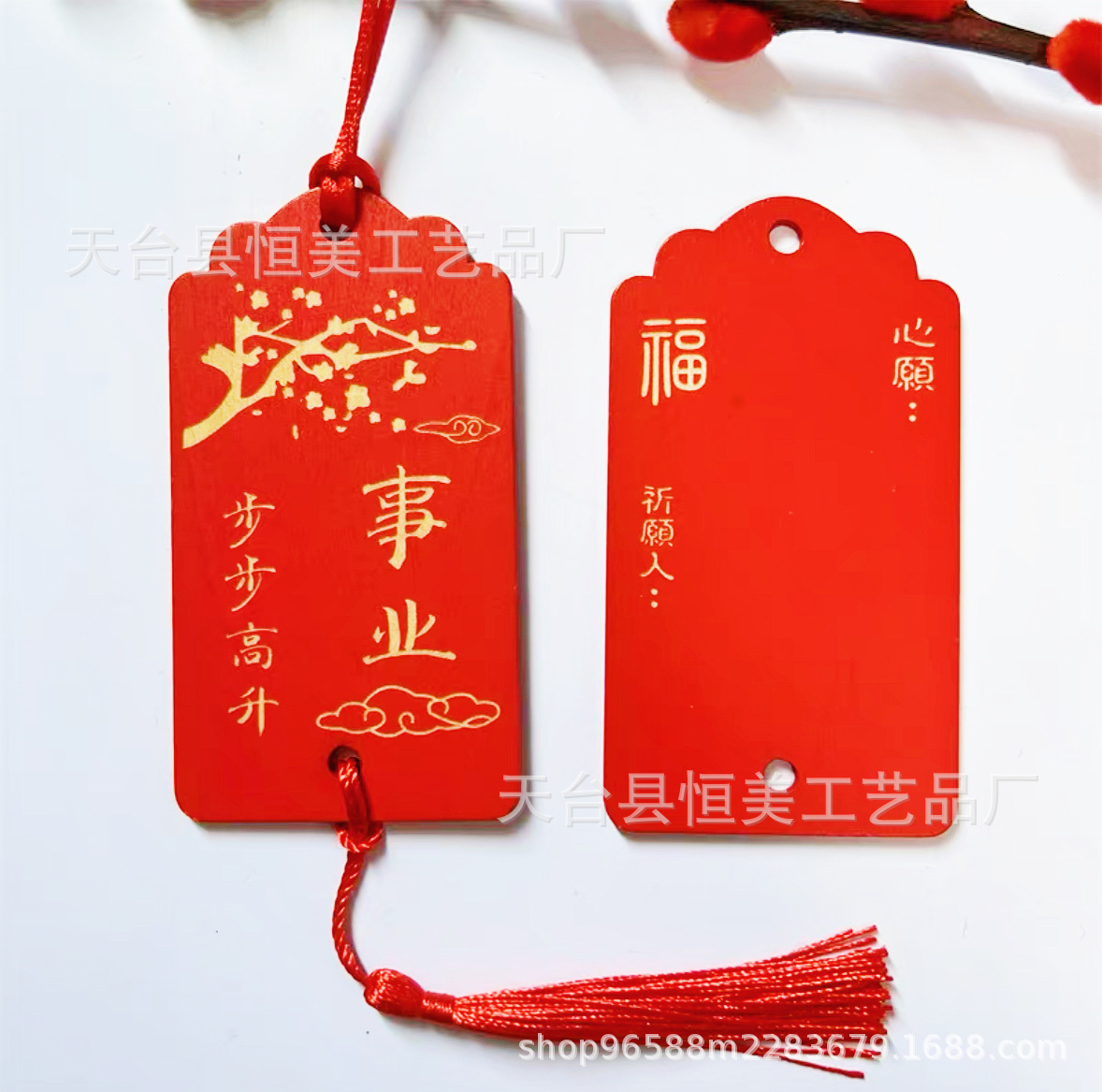 中国风鎏金印刷许愿牌旅游文创装饰吊牌祈福牌木质红色木牌印LOGO