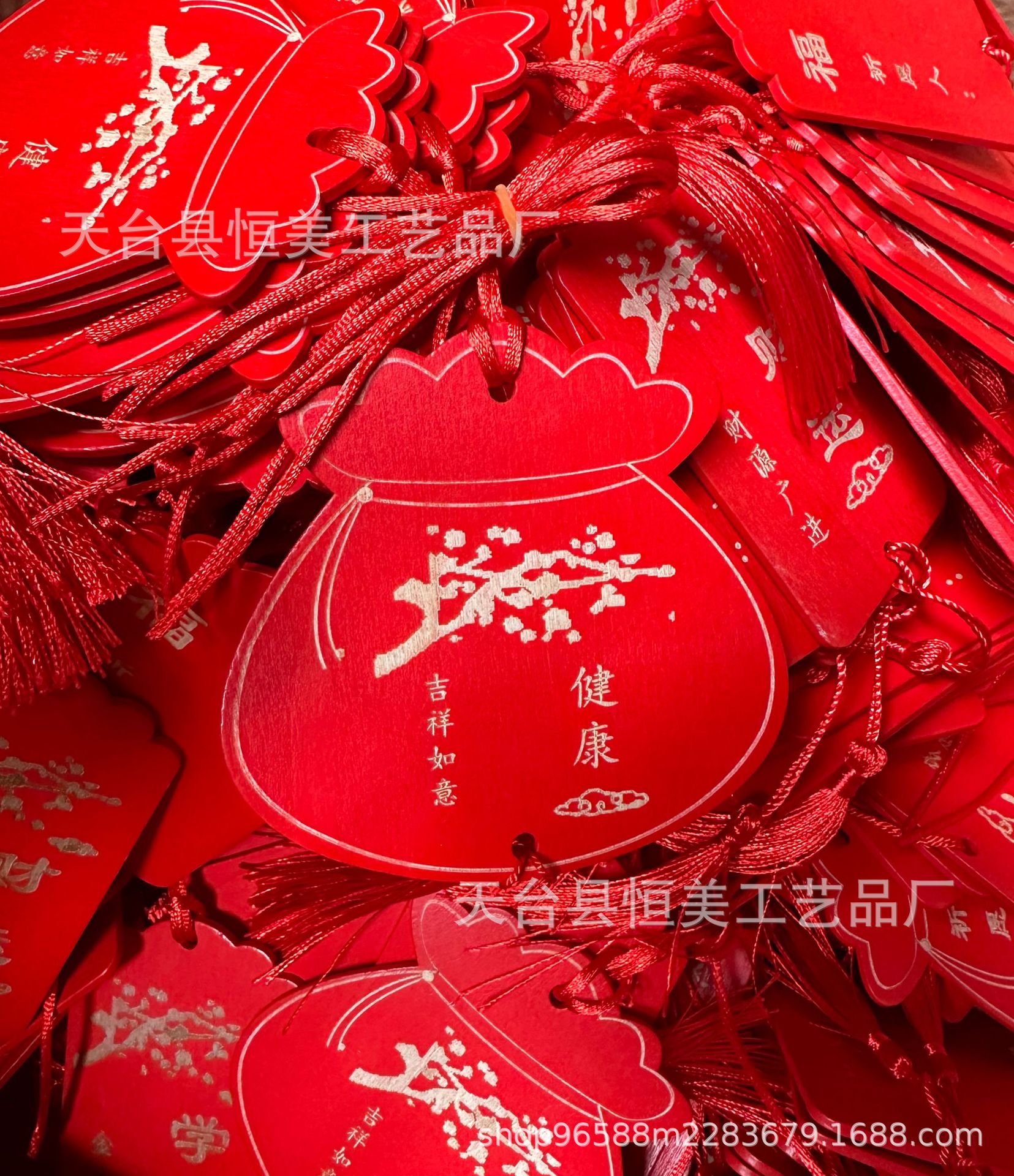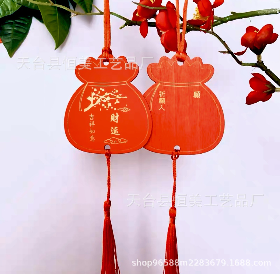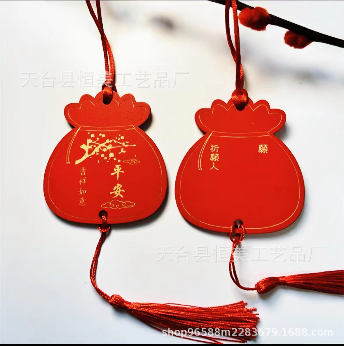 中国风鎏金印刷许愿牌旅游文创装饰吊牌祈福牌木质红色木牌印LOGO