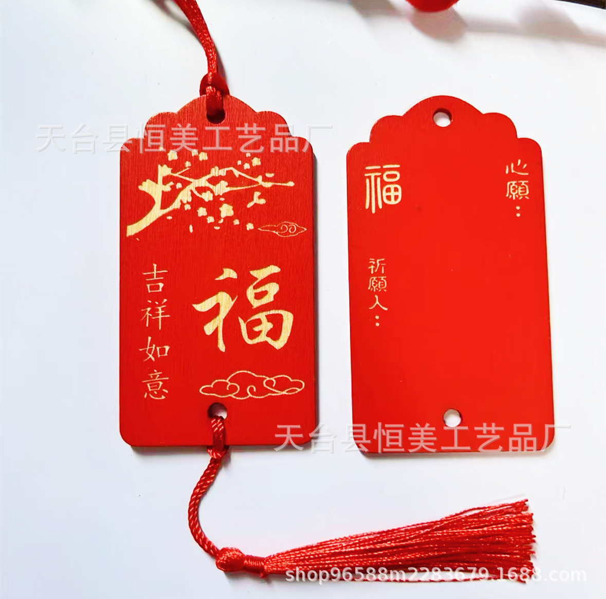 红色祈福牌许愿牌心愿牌木牌景区寺庙挂饰手写祝福活动木质装饰牌