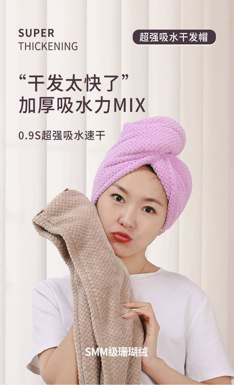 コーラルベルベットのドライヘアキャップ女性は吸水速乾パイナップルのドライヘアタオルが柔らかいので、毛が落ちないように髪を拭きます。
