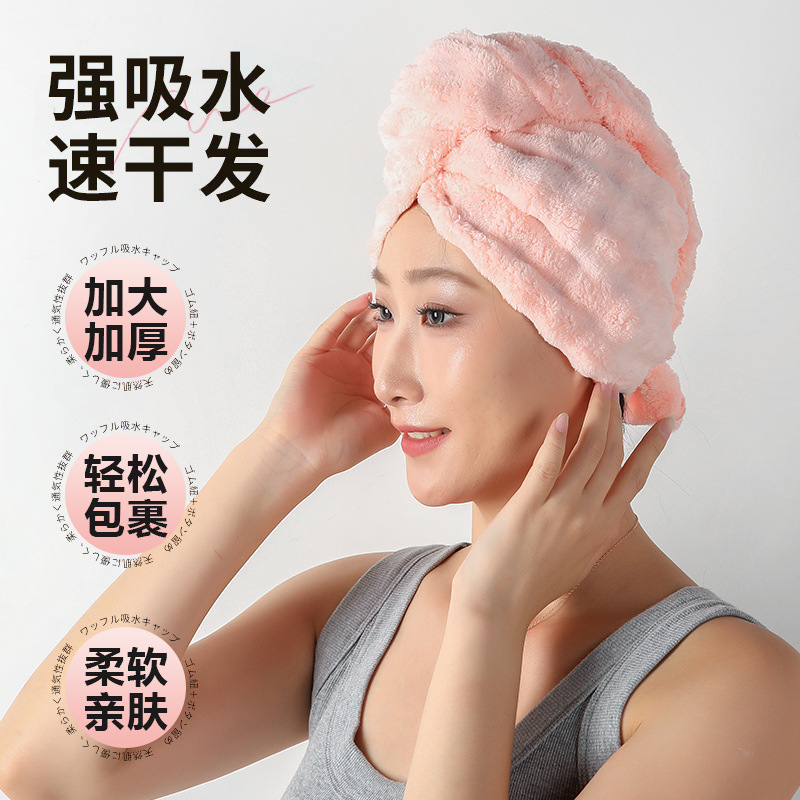クロスボーダー二重厚手シャワーキャップ女性吸水速乾帽サンゴのベルベットの乾いたタオルの頭のタオルの髪の帽子