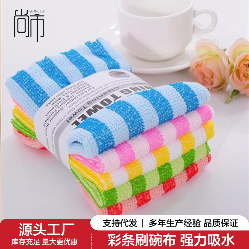 刷碗布毛巾条纹不沾油多功能超细纤维抹布洗碗懒人洗碗布去污神器
