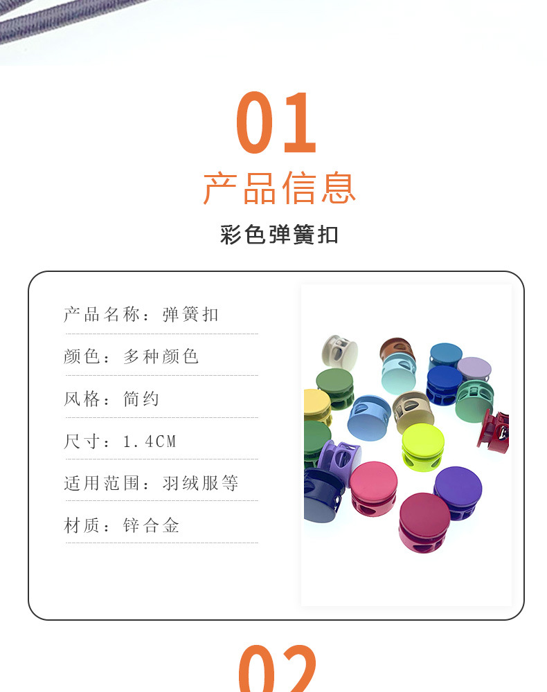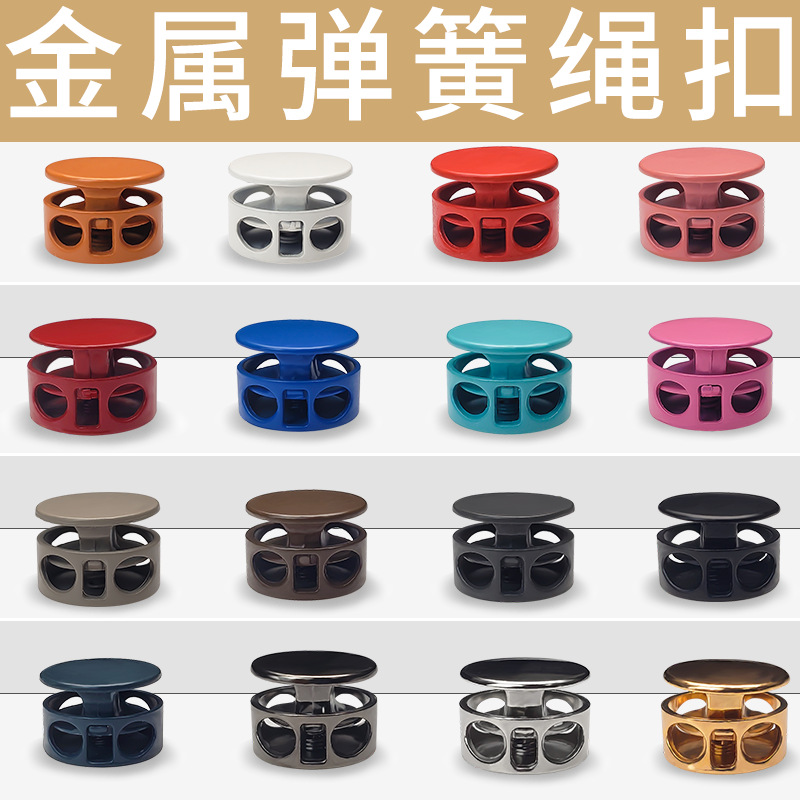 按压弹簧扣彩色两孔金属猪鼻扣止绳扣卡扣羽绒服调节扣滑动松紧扣