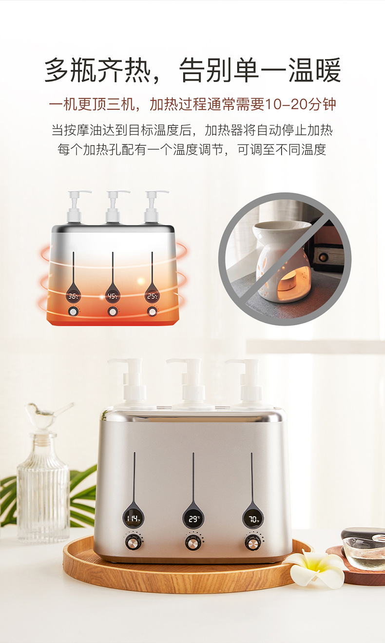マスター名騰新型3本用精油ヒーター アルミ合金内槽 恒温マッサージオイル容器