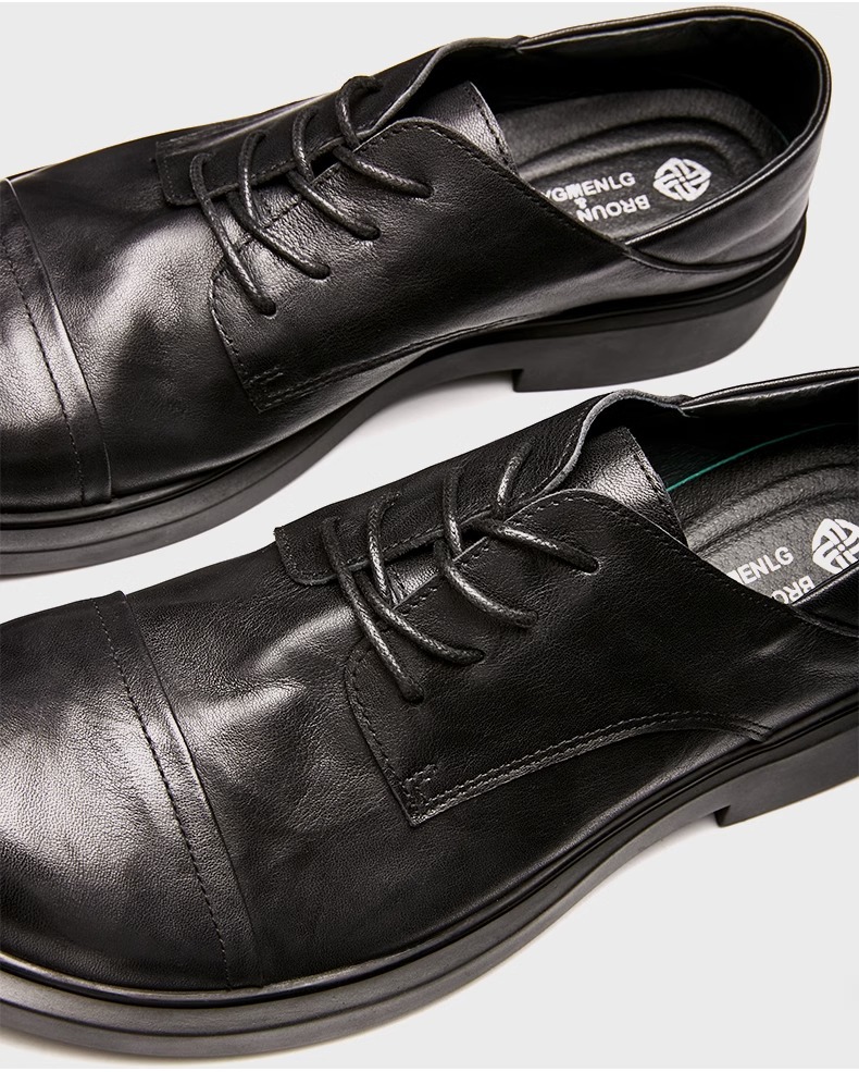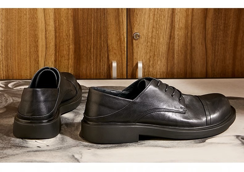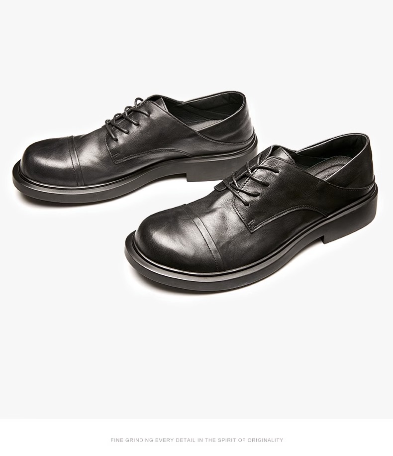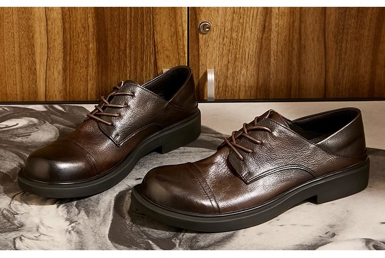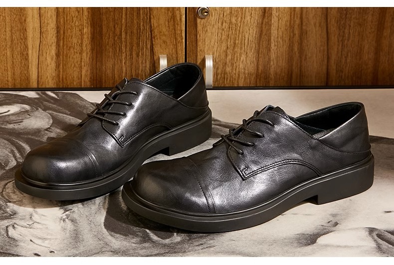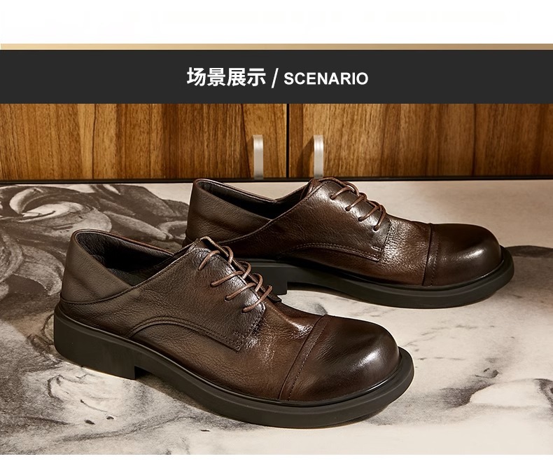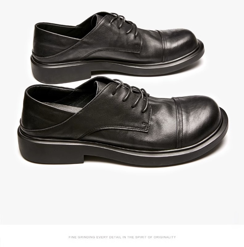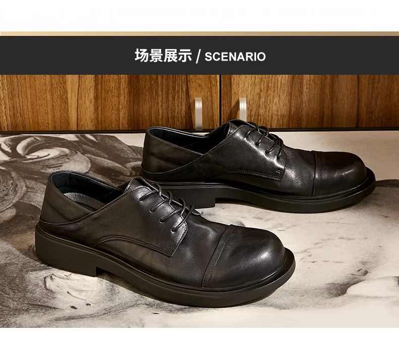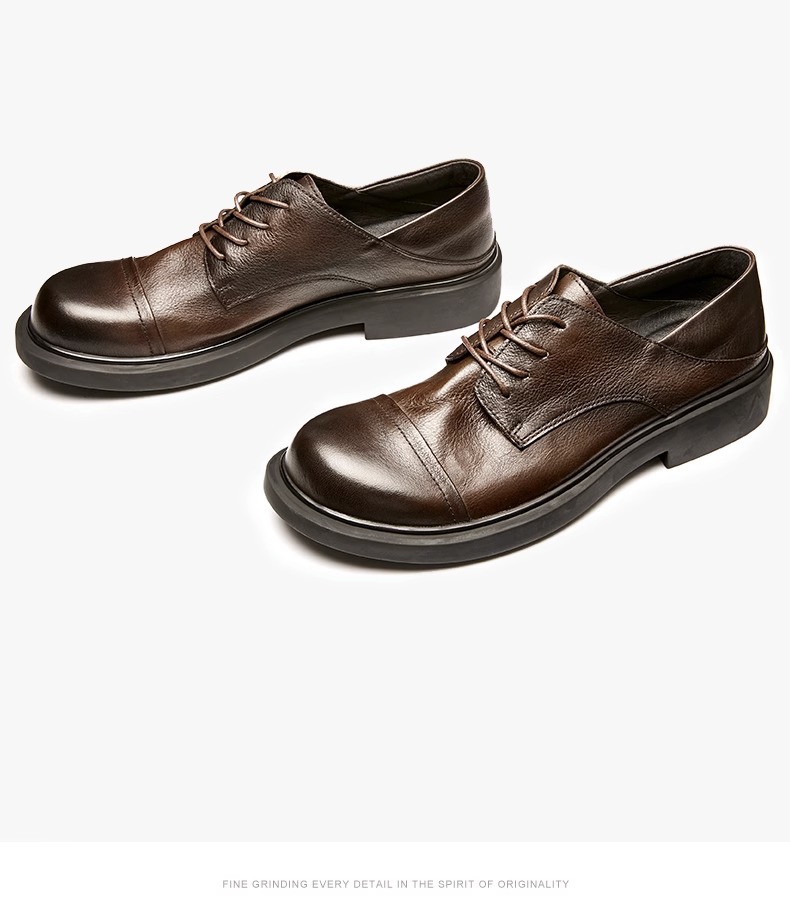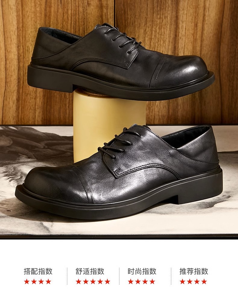 カジュアル革靴男2023年春夏英倫風真皮低組ひも靴通気丸頭ビジネス靴
