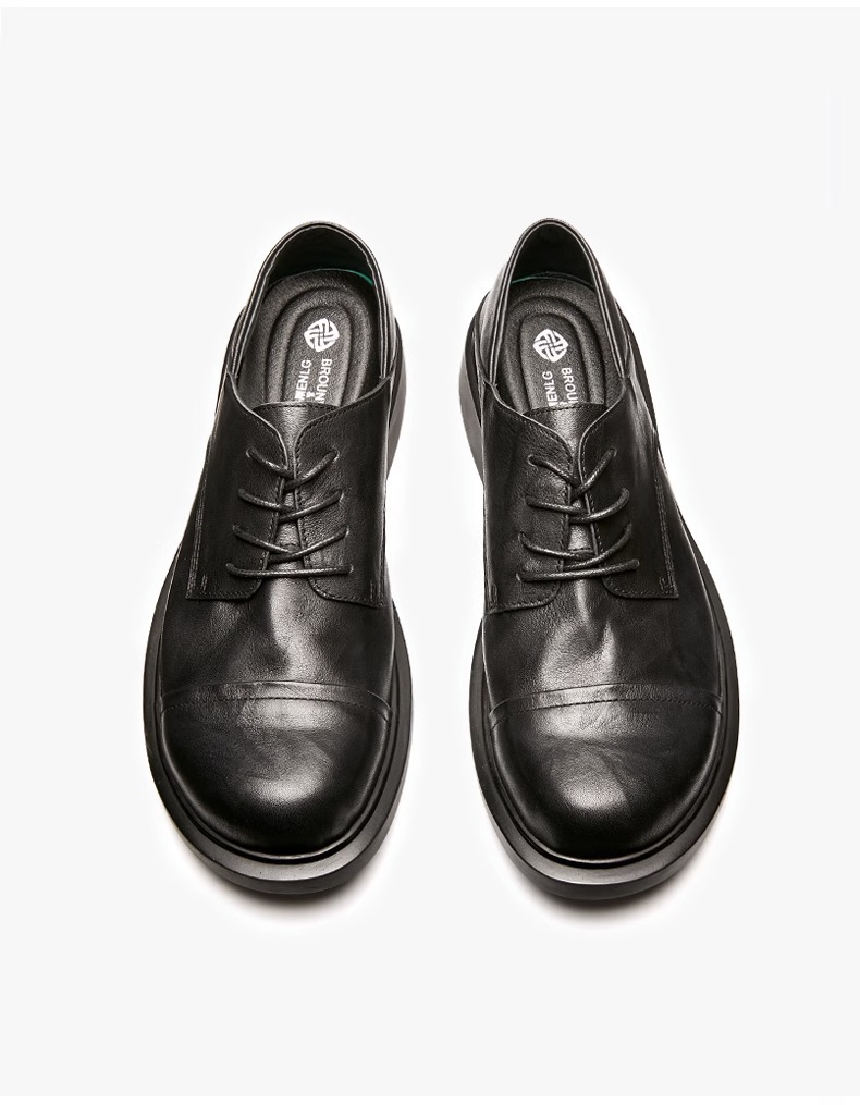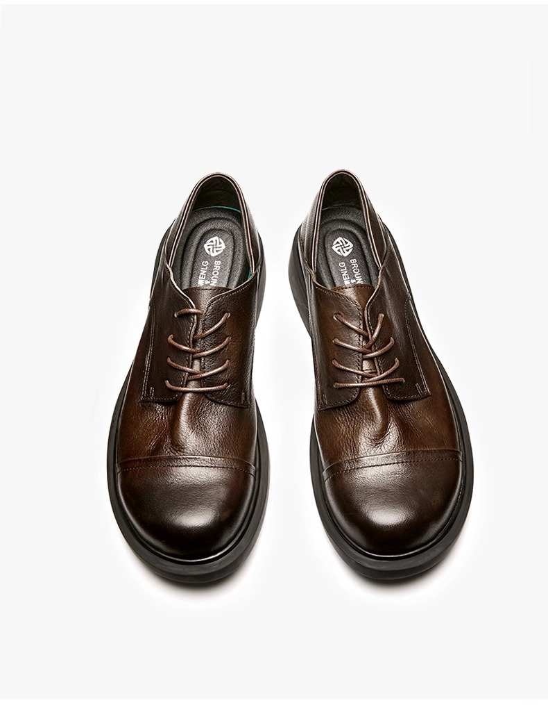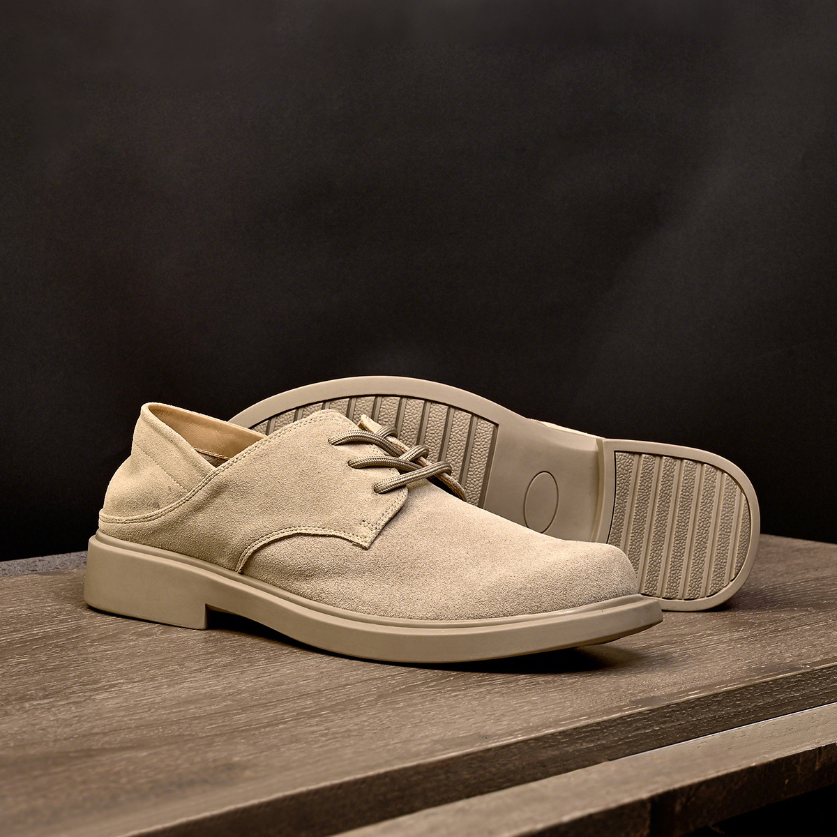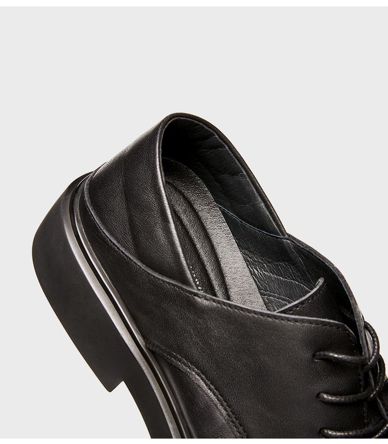 铂巍男士时尚皮鞋牛绒系带圆头商务休闲鞋软底防滑系带小皮鞋男