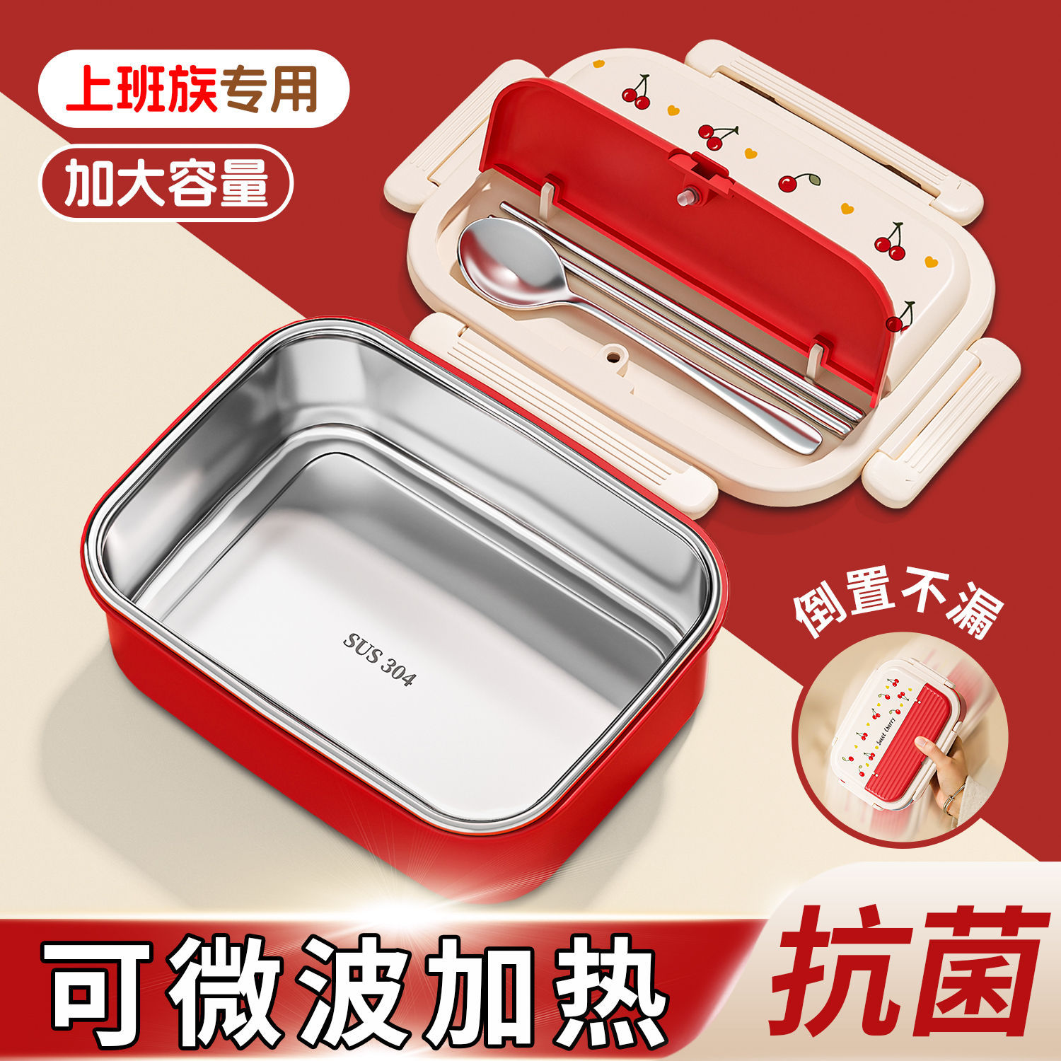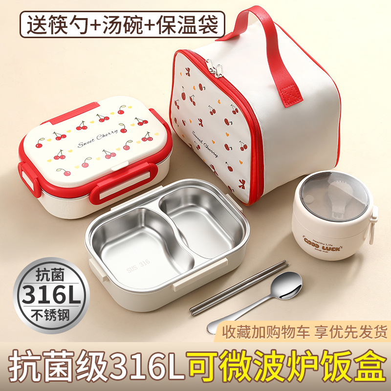 304ステンレス保温弁当箱サラリーマン専用電子レンジ加熱弁当箱2025新型弁当箱さくらんぼ
