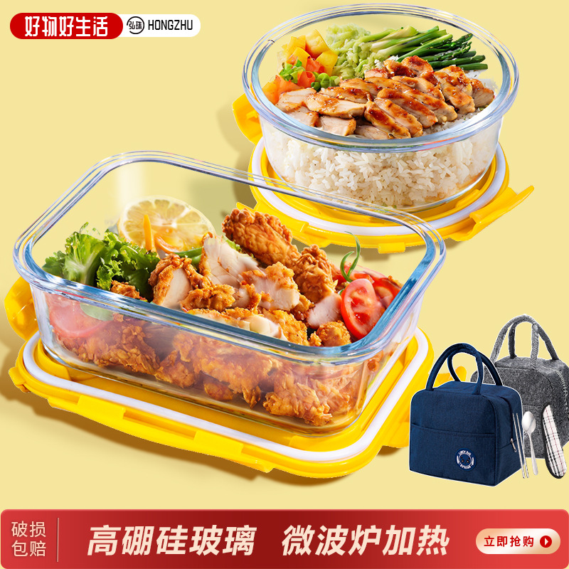 玻璃饭盒微波炉加热专用碗上班族带饭餐盒水果便当盒带盖食品保鲜