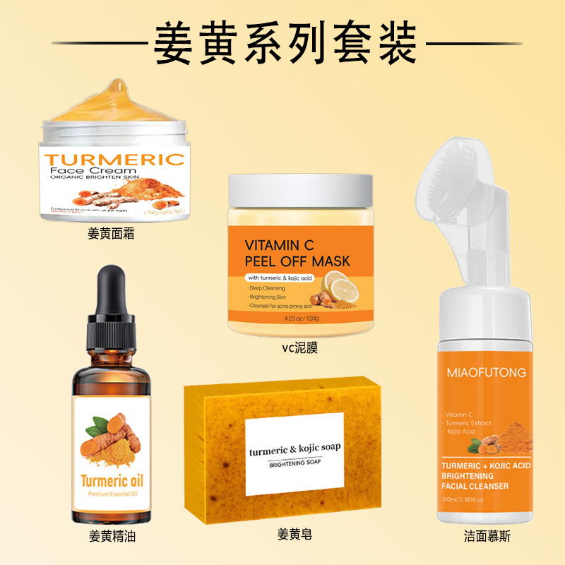 外贸跨境爆款姜黄皂洁面慕斯洁面套装去角质颗粒曲酸皂滋润亮肤