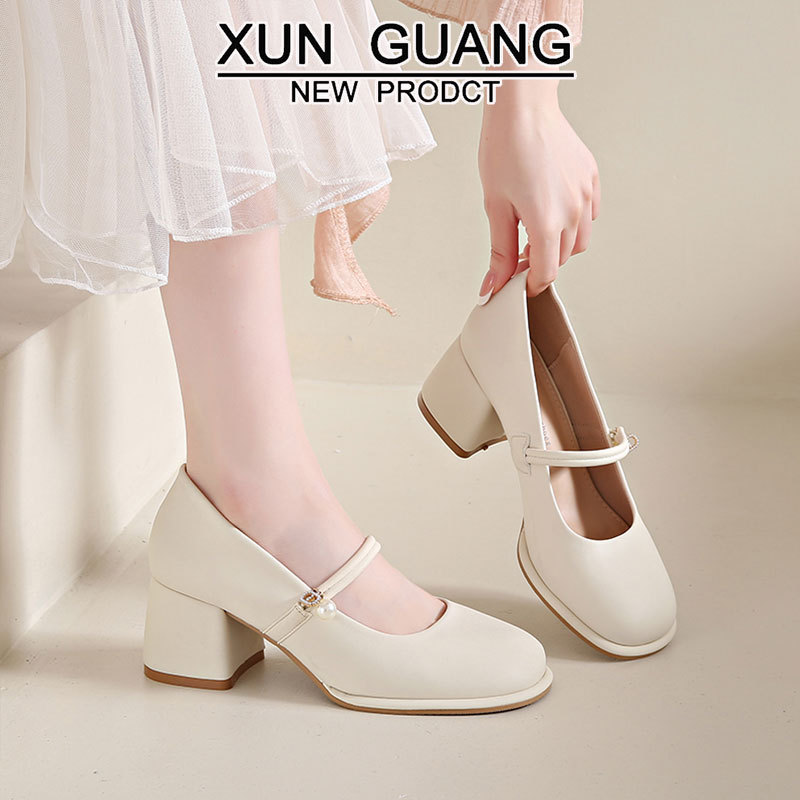 ハイヒールのメアリー珍の女性靴2025春の新型の百合の浅い口はスカートの靴の太さと小さい革靴の女性の卸売りを配合します。