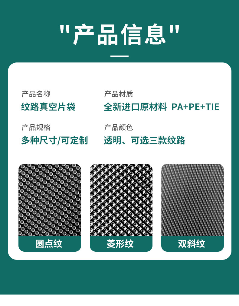 食品袋,水産物包装、農産物包装、肉類包装などの真空包装
