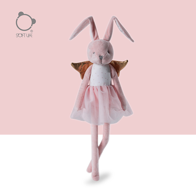 Softlifeピンクのガーゼのスカートのウサギのぬいぐるみの子供の添い寝の翼は人形の女子学生の誕生日の贈り物をなだめます。