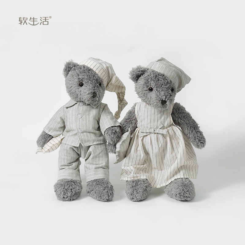 ソフトライフグレーパジャマカップルクマぬいぐるみ子供睡眠人形帽子クマ人形誕生日ギフト