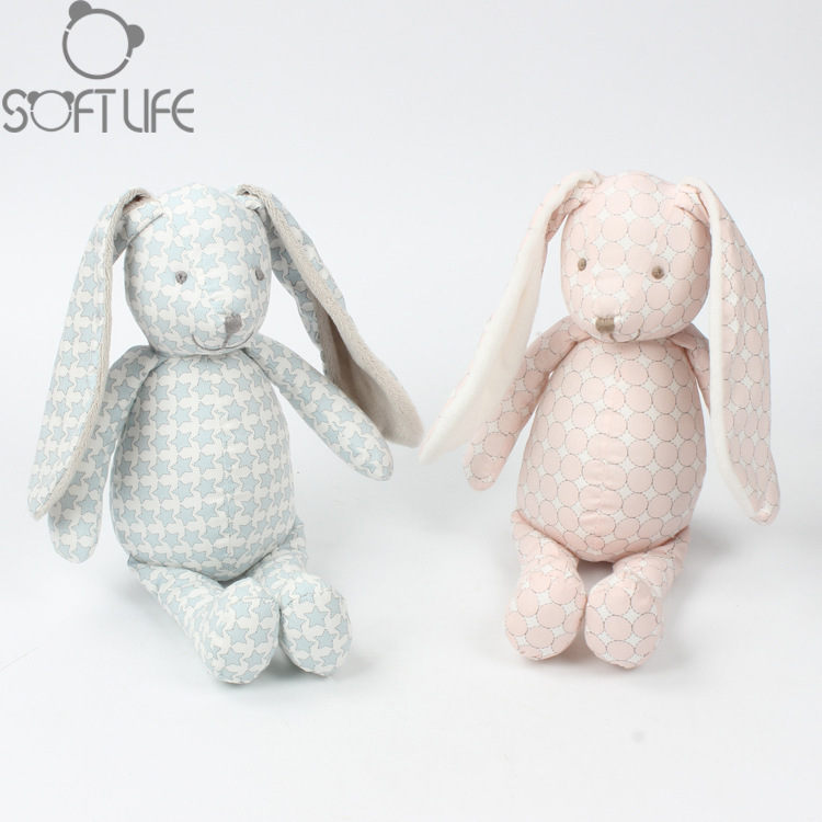 ソフトライフ ピンクブルー プリント布製 うさぎのぬいぐるみ 可愛い癒し系おもちゃ 赤ちゃんのお供 睡眠用人形