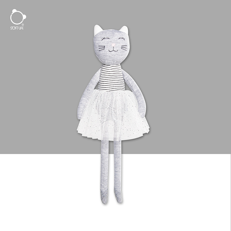 Softlife灰色のガーゼのスカートの猫の人形の子供はぬいぐるみのかわいい子猫の人形の卸売りに付き添います。