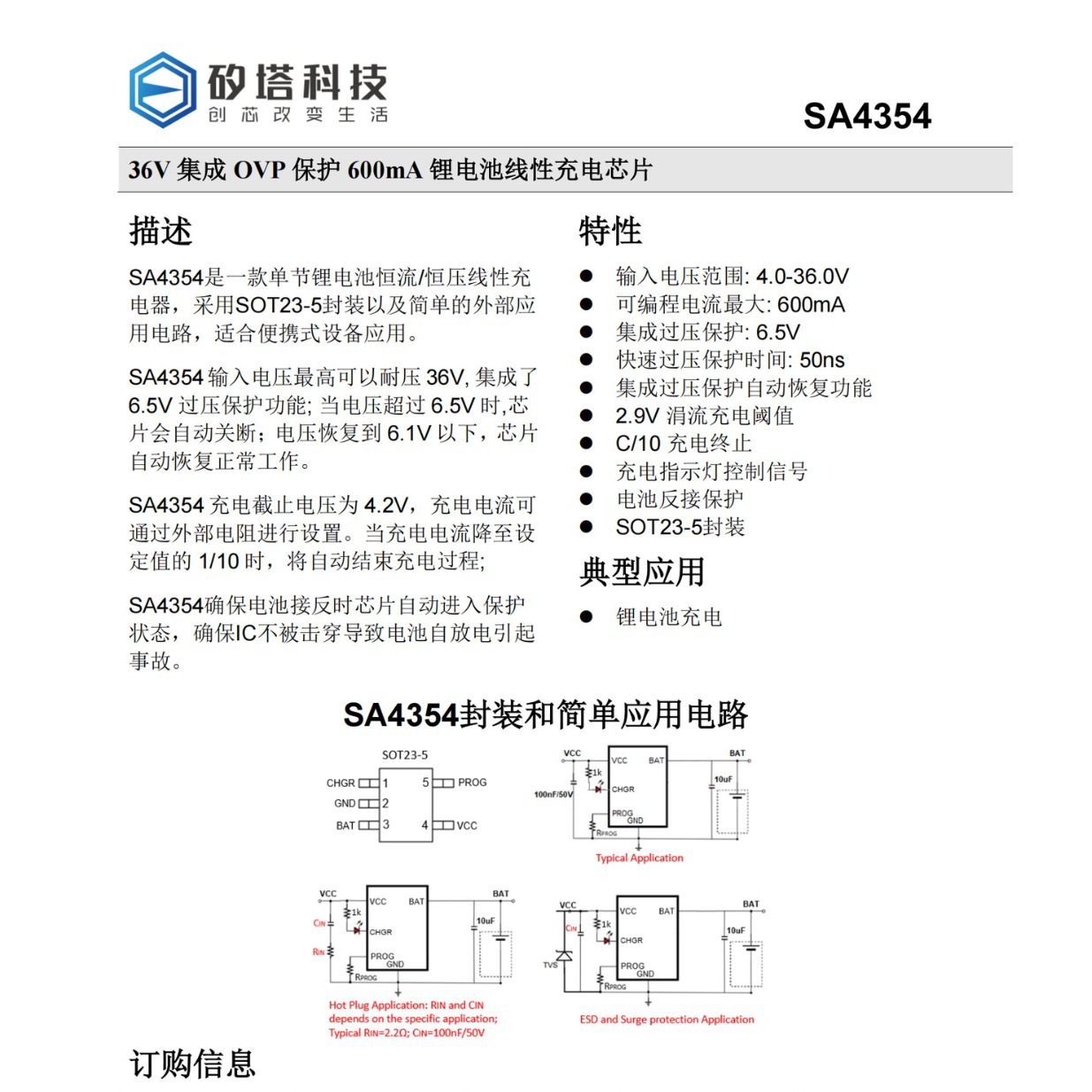 SA4354: SOT23-5耐圧36V OVP保护机能付充电チップ