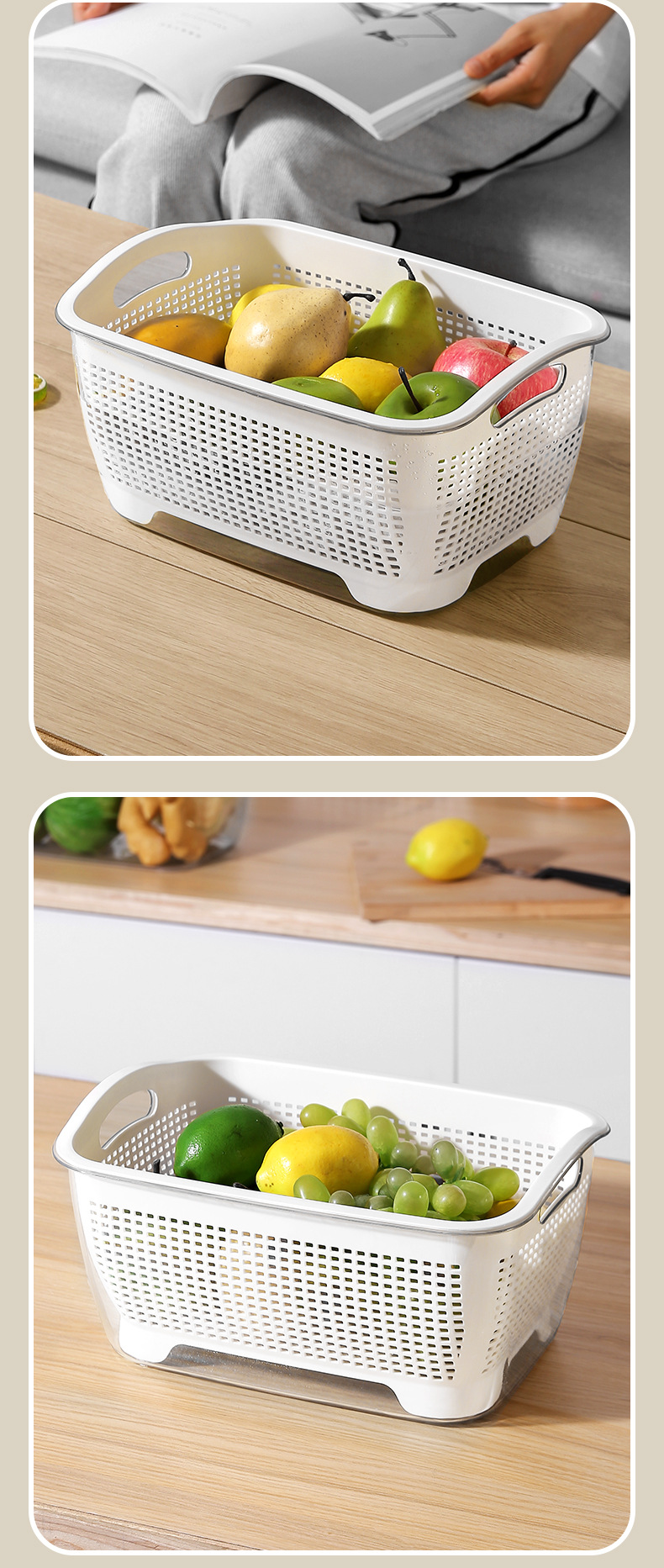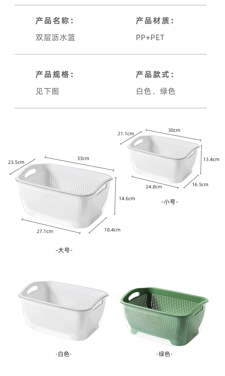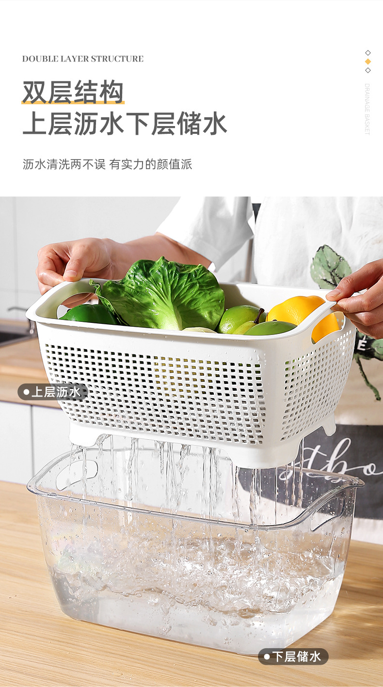 北欧二重野菜バスケットプラスチック水切りふるい台所果物収納バスケット収納野菜バスケット2点セット