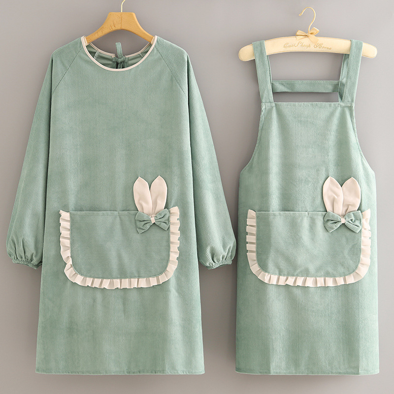 新しいベルベット防水長袖カバー家庭用キッチンかわいい防汚エプロン出勤耐汚れ作業服保護女性